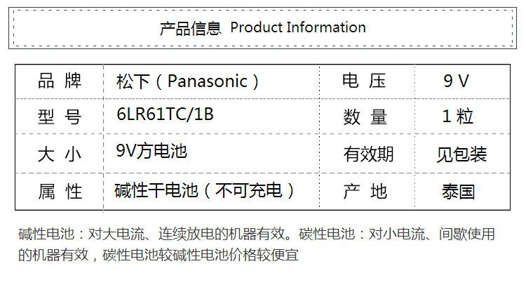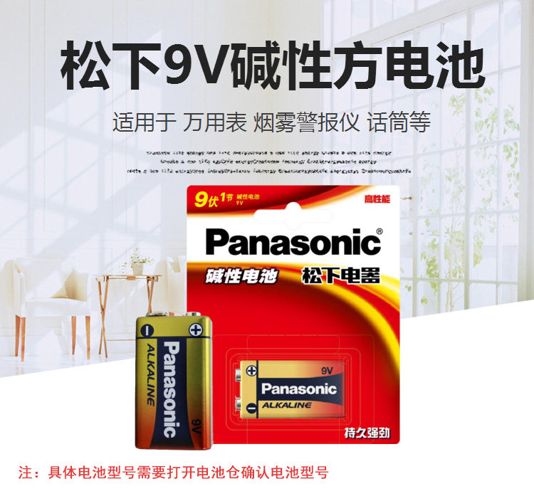 Panasonic Imported High-Performance 9V Alkaline Square Dry Batteries Suitable for Smoke Detectors and Wireless Microphones, Pack of 4