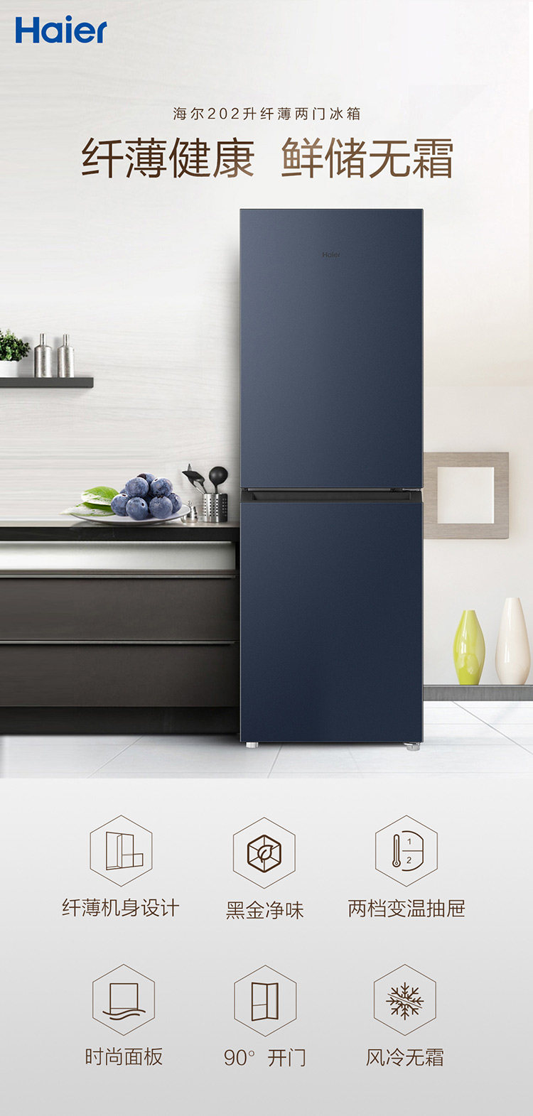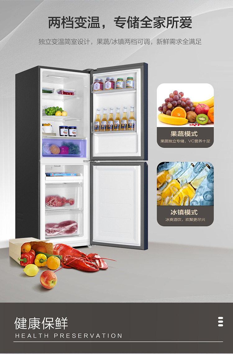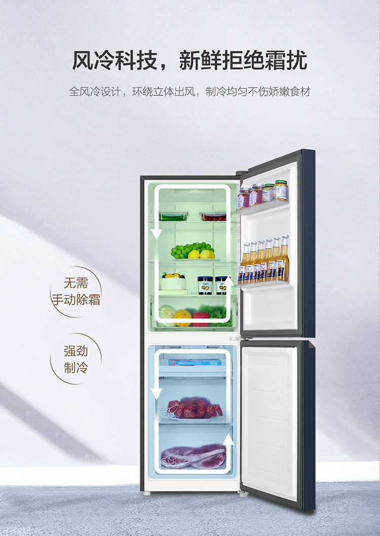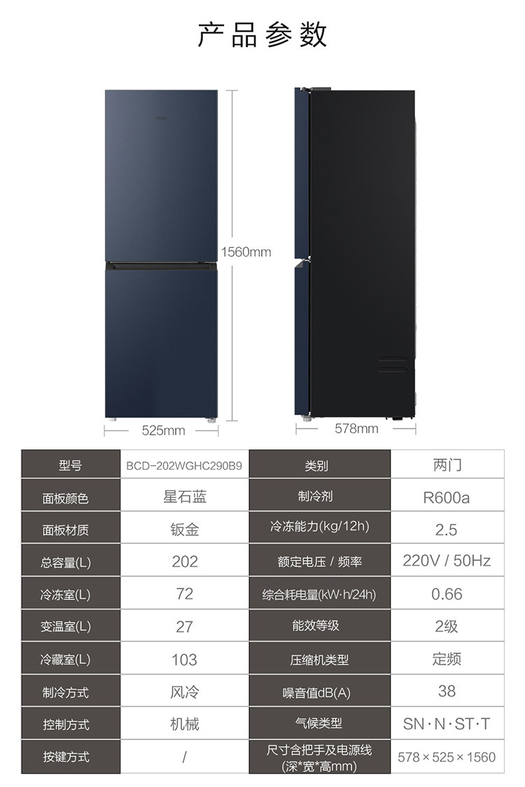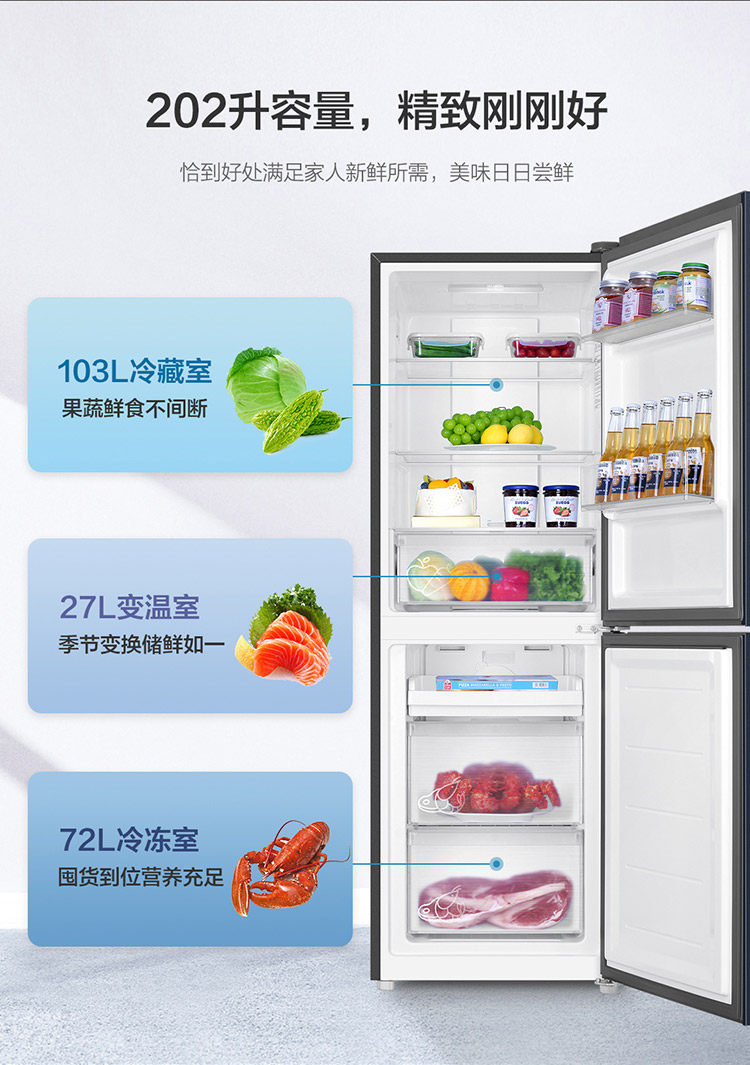 Haier Two-Door Refrigerator, 202 Liters, Dual-Door, Household, Frost-Free, Ultra-Thin, Small Dormitory Refrigerator, Black Gold, Odor-Free