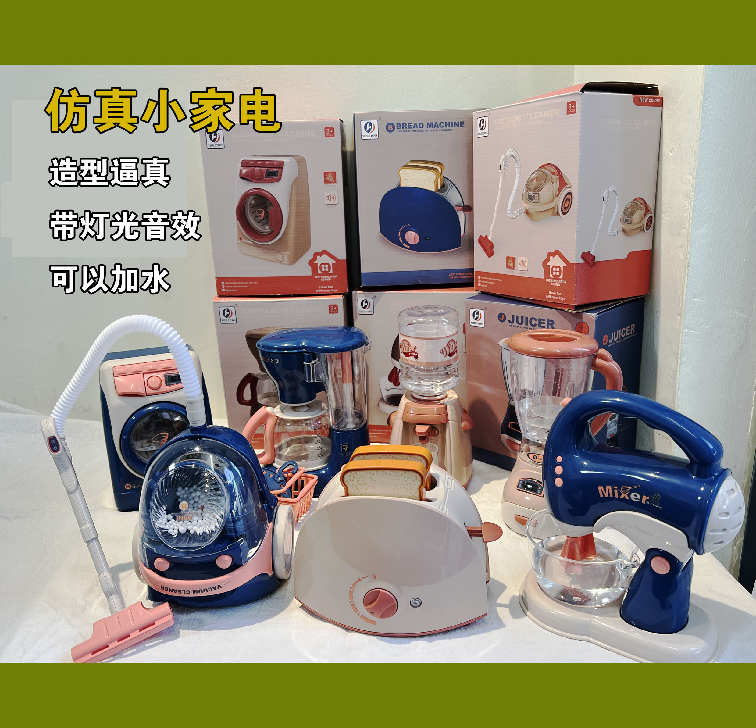 Children's Pretend Play Electric Appliances with Light and Sound Effects: Washing Machine, Coffee Maker, Bread Maker, Juicer, Vacuum Cleaner Toys