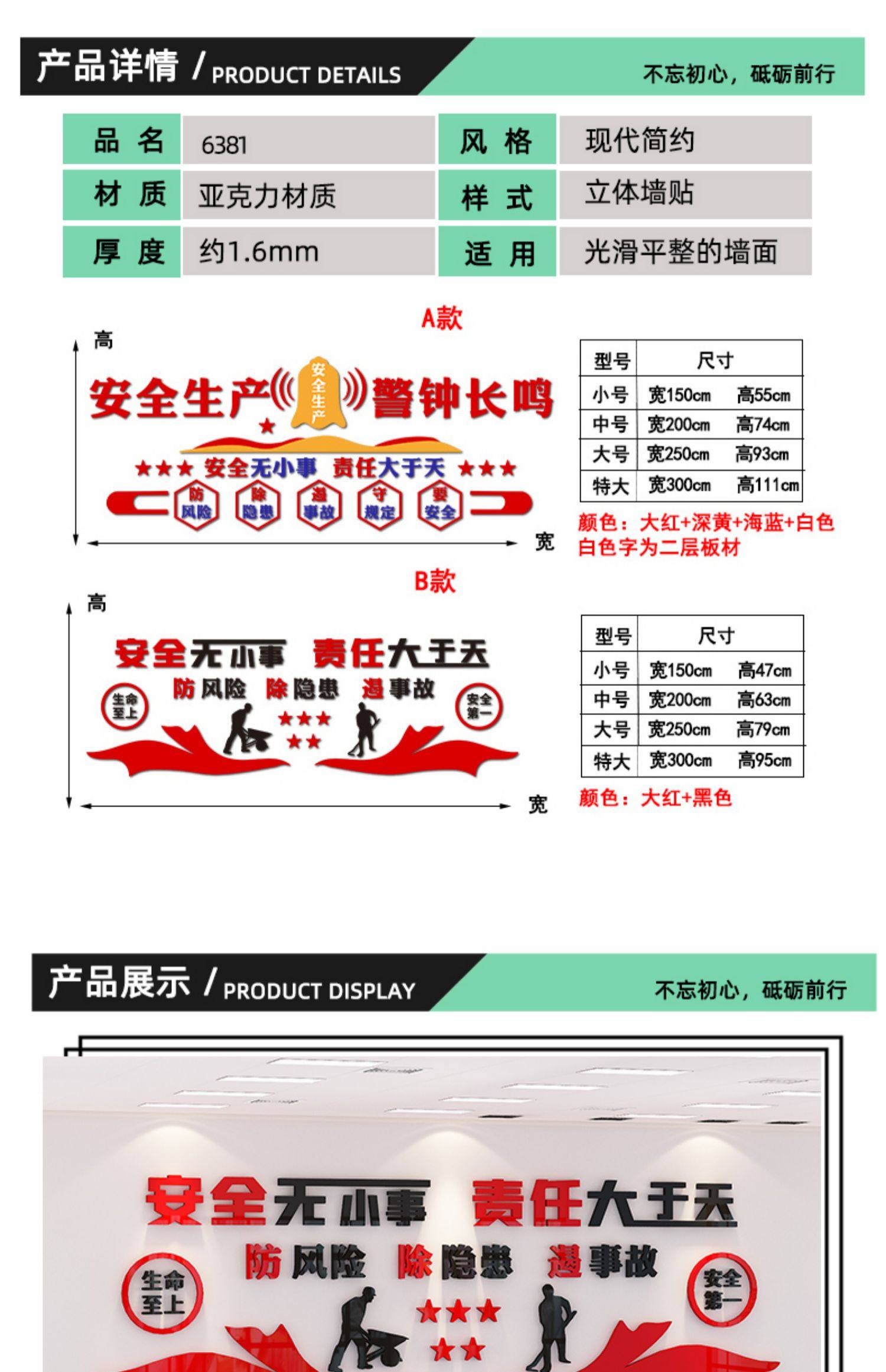 Factory Workshop Safety Production Slogans Cultural Wall Stickers Office Layout Wall Decoration Company Corporate Culture