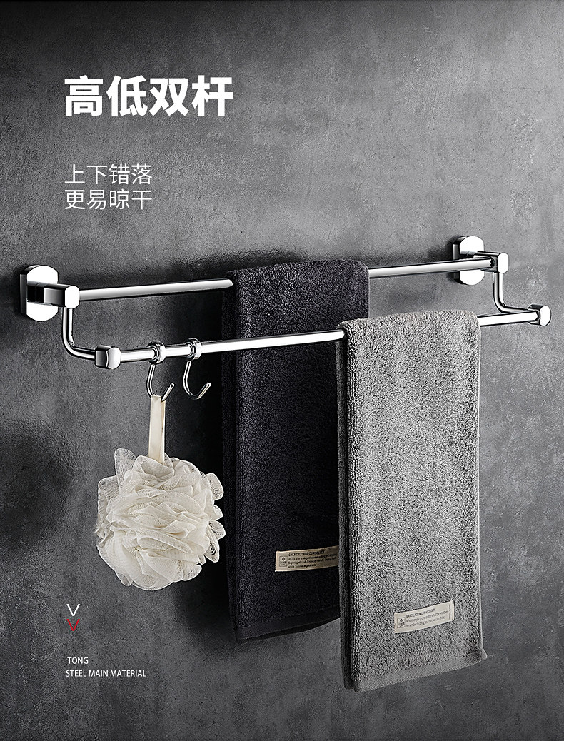 Italian Aisino All-Copper Bathroom Towel Rack Double Rod No-Drill Towel Rack Bathroom Storage Rack Wall-Mounted