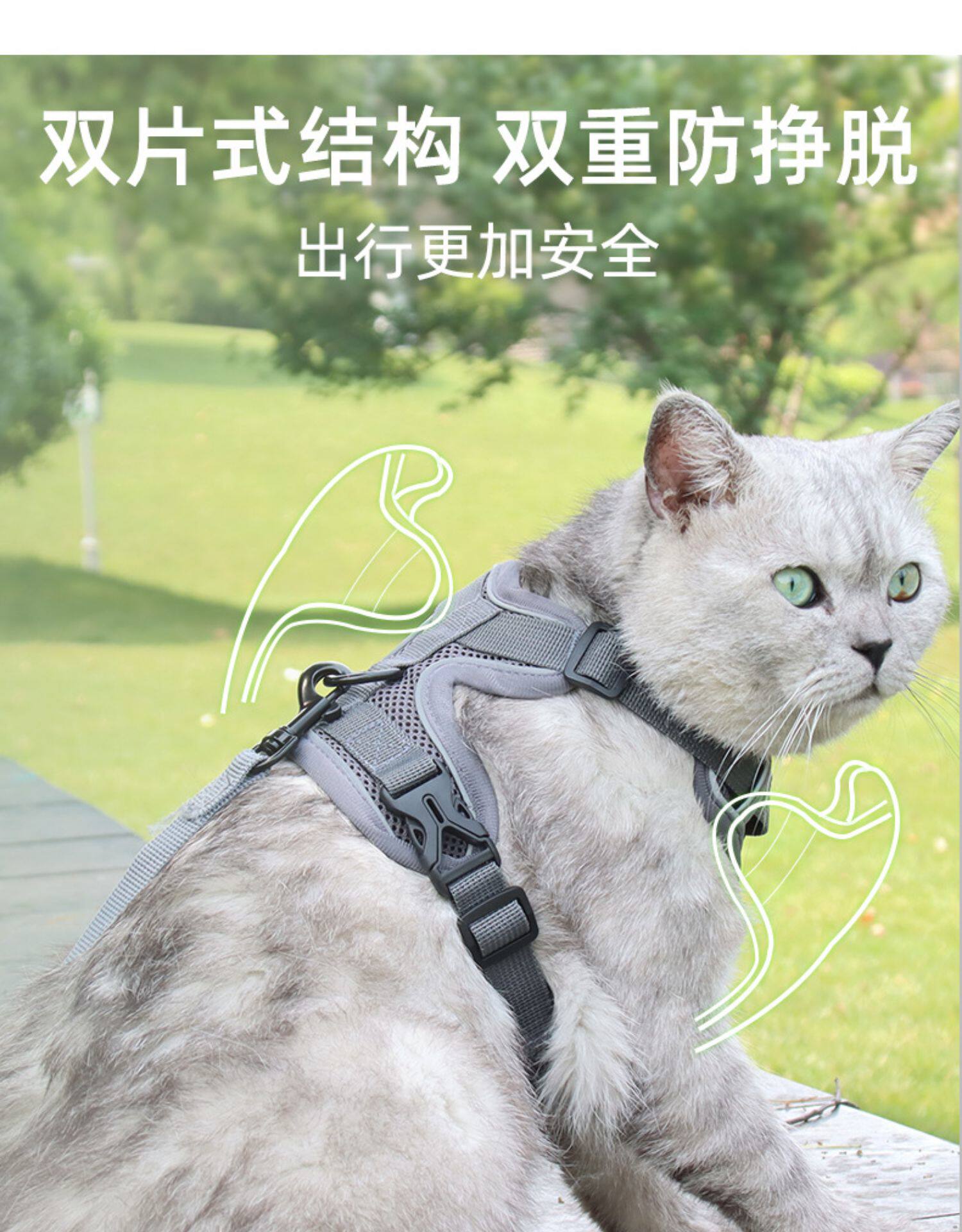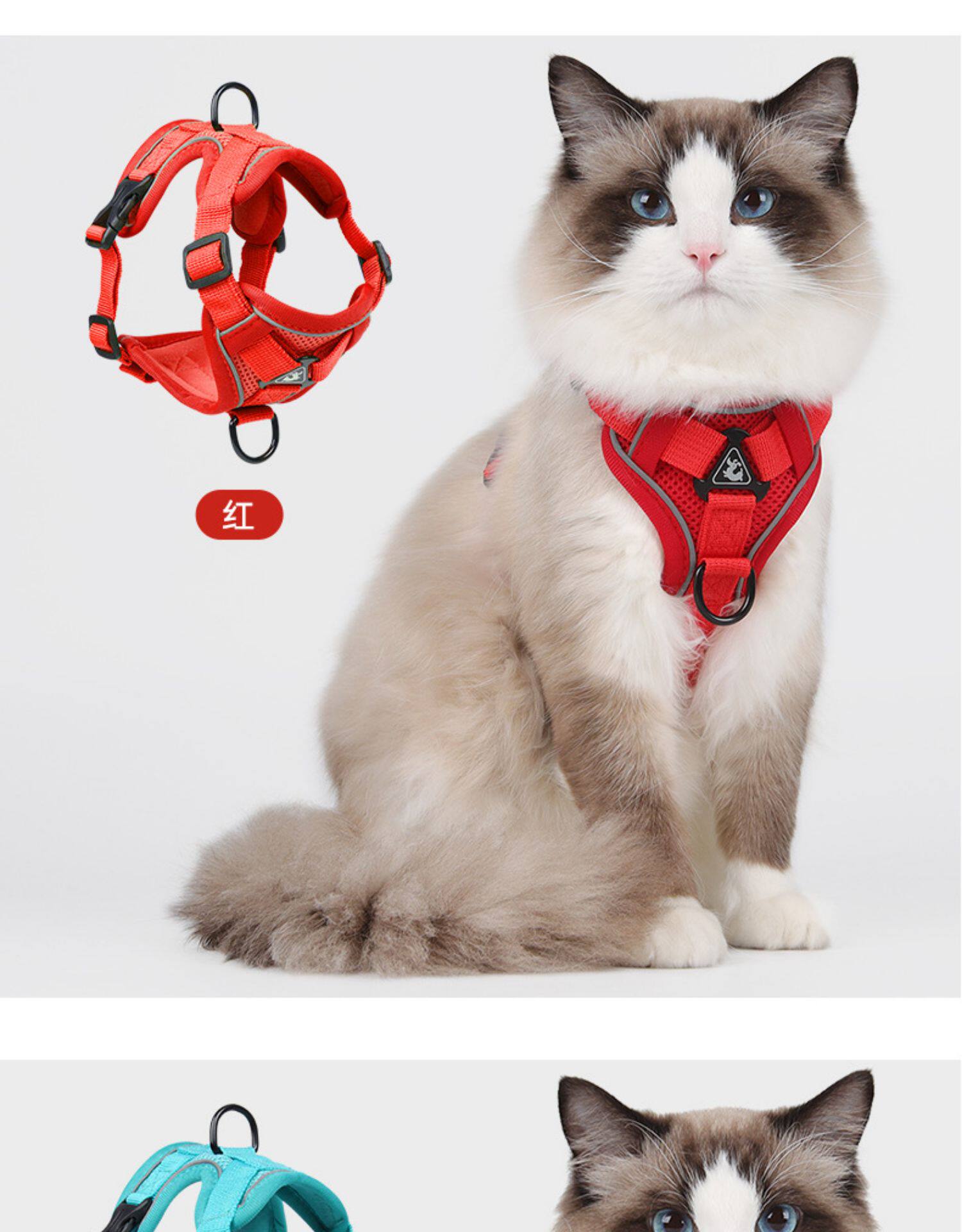 Cat Leash Vest-Style Anti-Escape Adjustable Harness for Walking Cats, Comfortable and Breathable Dog Leash