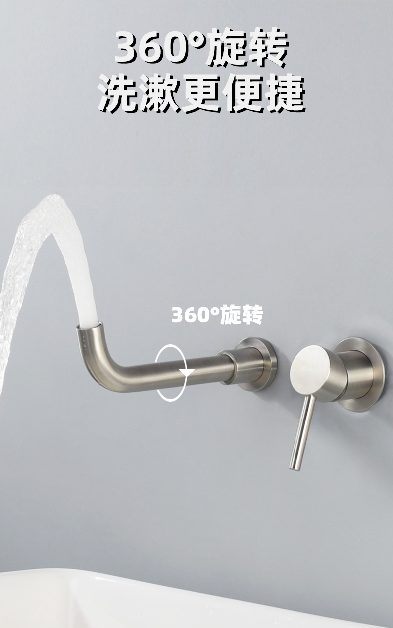 Concealed Wall-Mounted Hot and Cold Faucet, Embedded in the Wall, Hidden Basin Sink, Rotatable Faucet Set