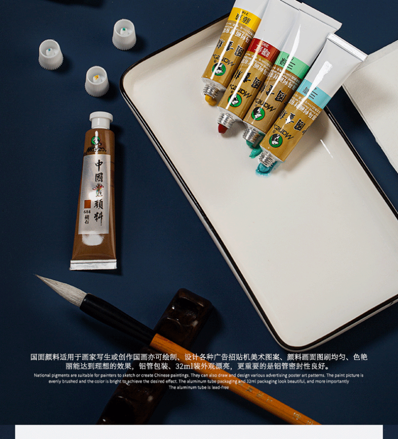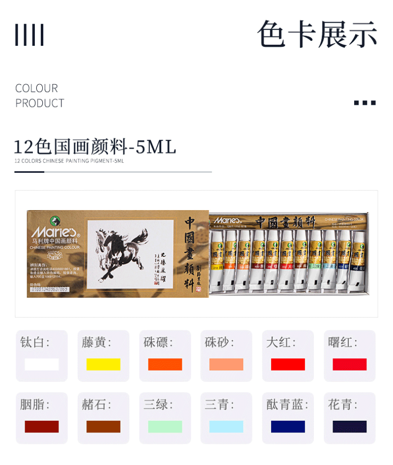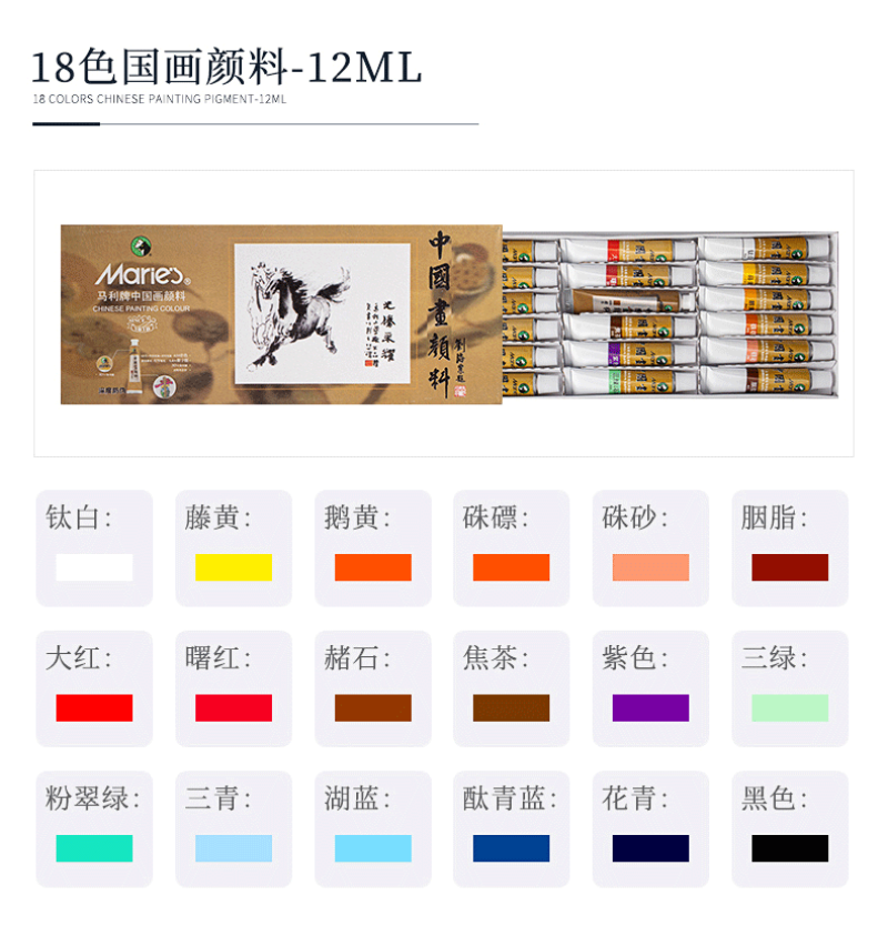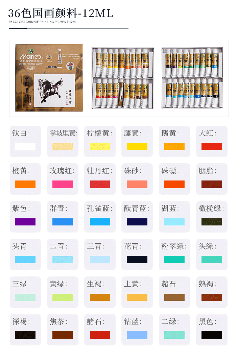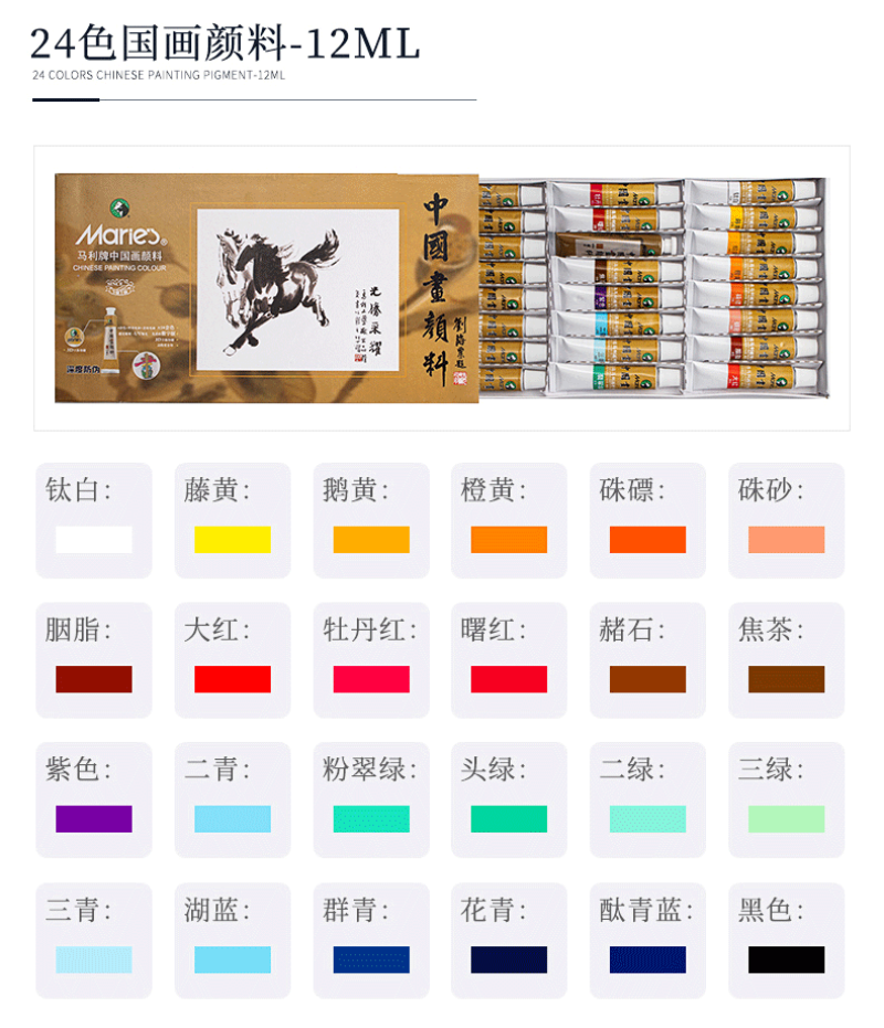 Marley Brand Chinese Painting Pigments 12 Colors for Beginners, Brush Set for Elementary School Students, Children's Entry-Level Materials, Fine Brushwork Painting for Adults, 24 Colors Professional Box, Ink Painting Tools Set, Chinese Painting Supplies Tool Box Complete Set