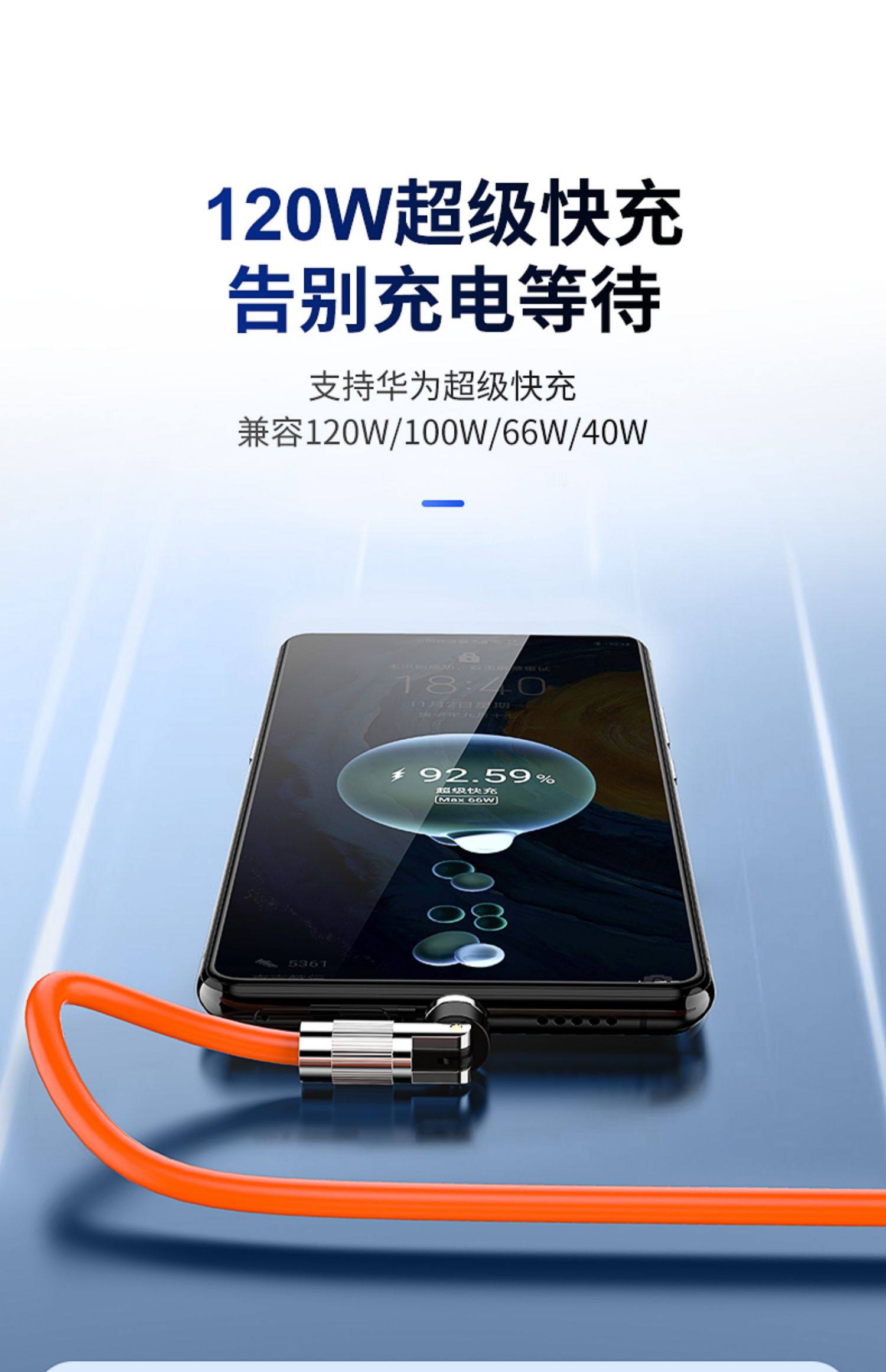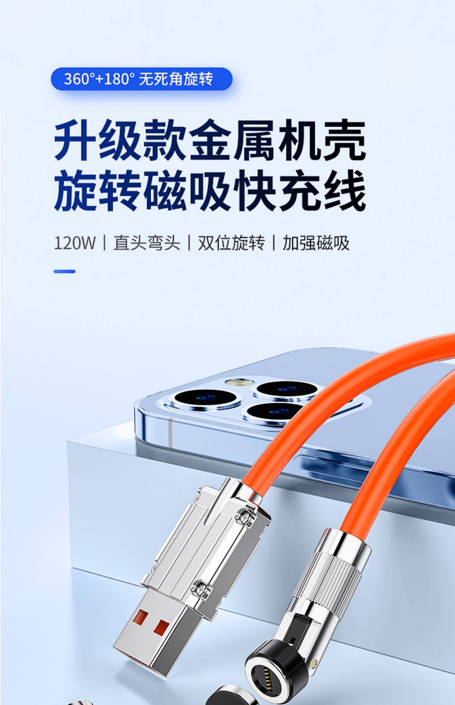 Type-C Magnetic Rotating Data Cable 120W Super Flash Charge 6A Fast Charge Tpyec Suitable for Huawei Mate Charger 5A Cable Xiaomi Honor Vivo Mobile Phone Oppo Android Redmi Iq