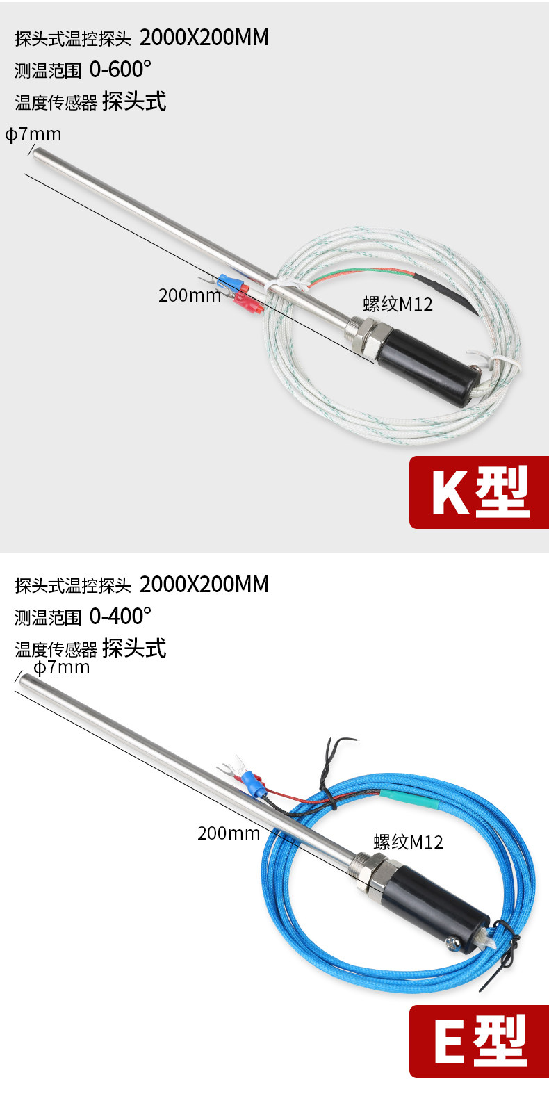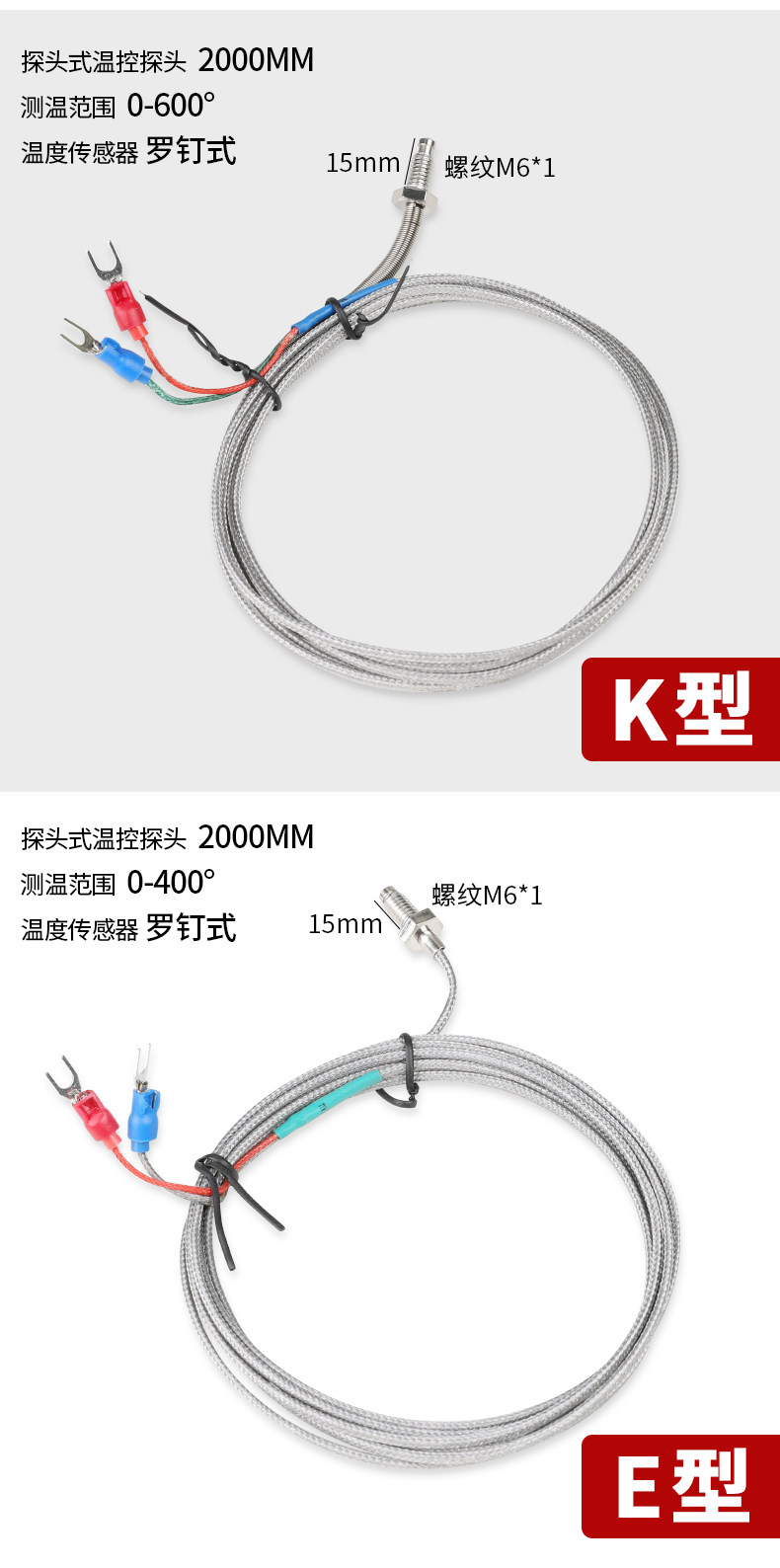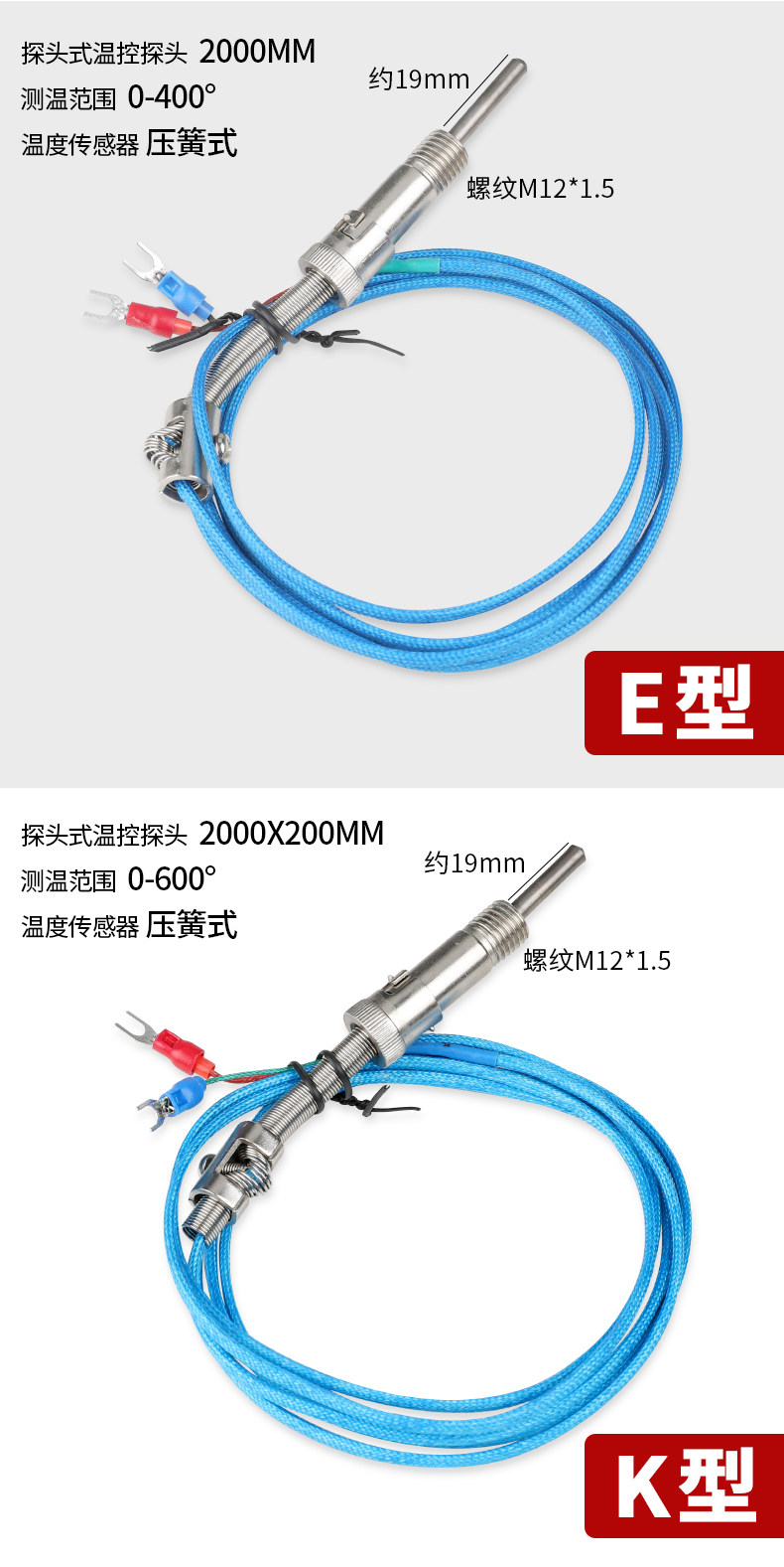 Brand Delixi E-Type and K-Type Compression Spring Thermocouple Temperature Controller Probe, Temperature Measuring Wire, Temperature Sensing Wire, Temperature Sensor Probe