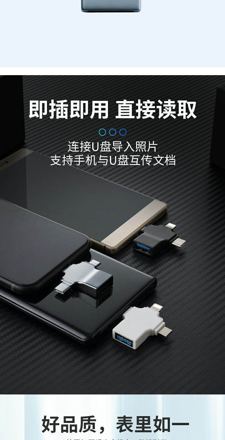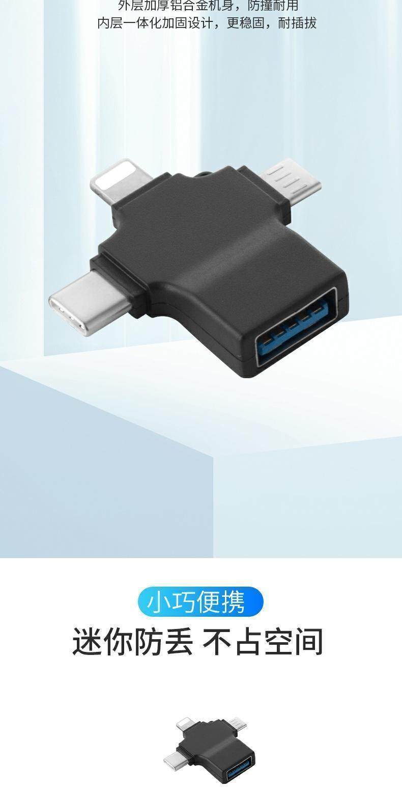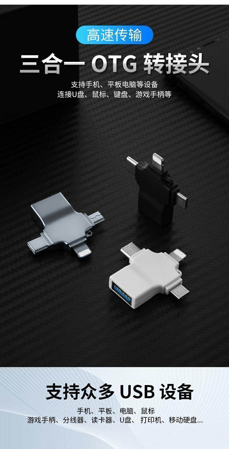 Color Classification Three-In-One Otg Adapter[Black]Apple/Type C/Android,Three-In-One Otg Adapter[White]Apple/Type C/Android,Three-In-One Otg Adapter[Upgraded Version/Aluminum Alloy Silver]Apple/Type C/Android