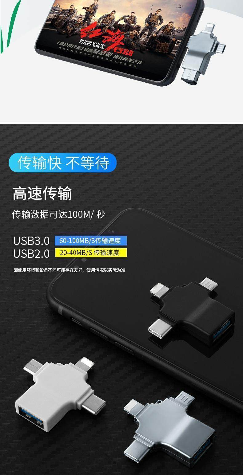 Otg Adapter Is Suitable for Apple, Oppo, Xiaomi, Vivo, and Android Phones, Multi-Functional USB Flash Drive for Downloading Songs to USB Flash Drive, Type-C Converter, Usb3.0 Connection for Mouse and Keyboard, Otg Three-In-One