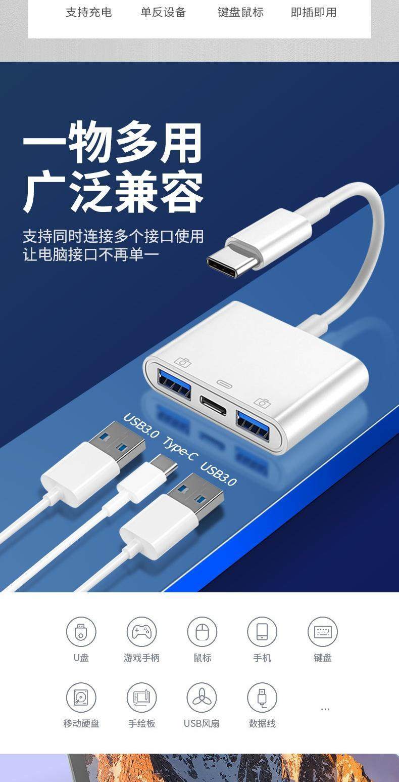 OTG adapter two-in-one suitable for Huawei oppo Xiaomi vivo Android mobile phone multi-function U disk download song to USB typec converter USB connection three-in-one mouse and keyboard dedicated