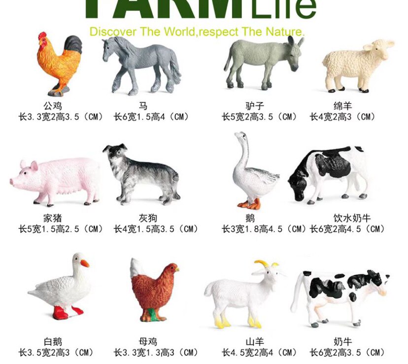 Mini Animal Models Tiger Lion Elephant Panda Poultry Chicken Duck Goose Pig Sheep Dog Realistic Wild Ornaments Toys