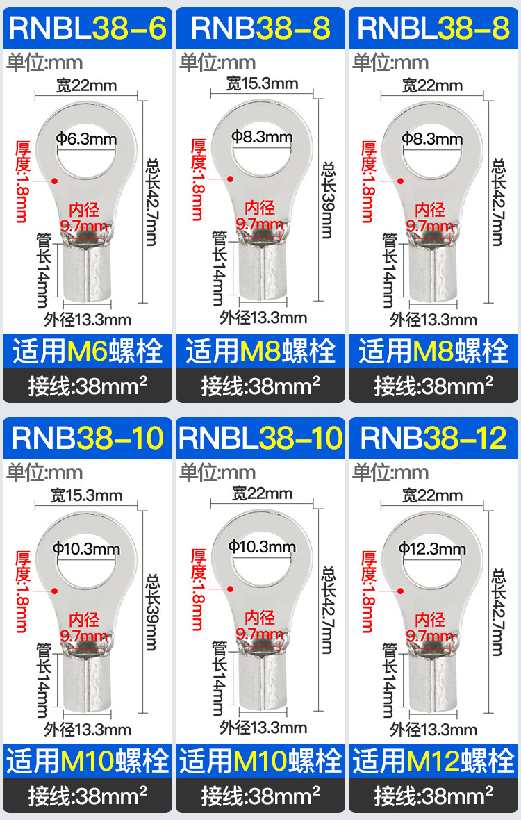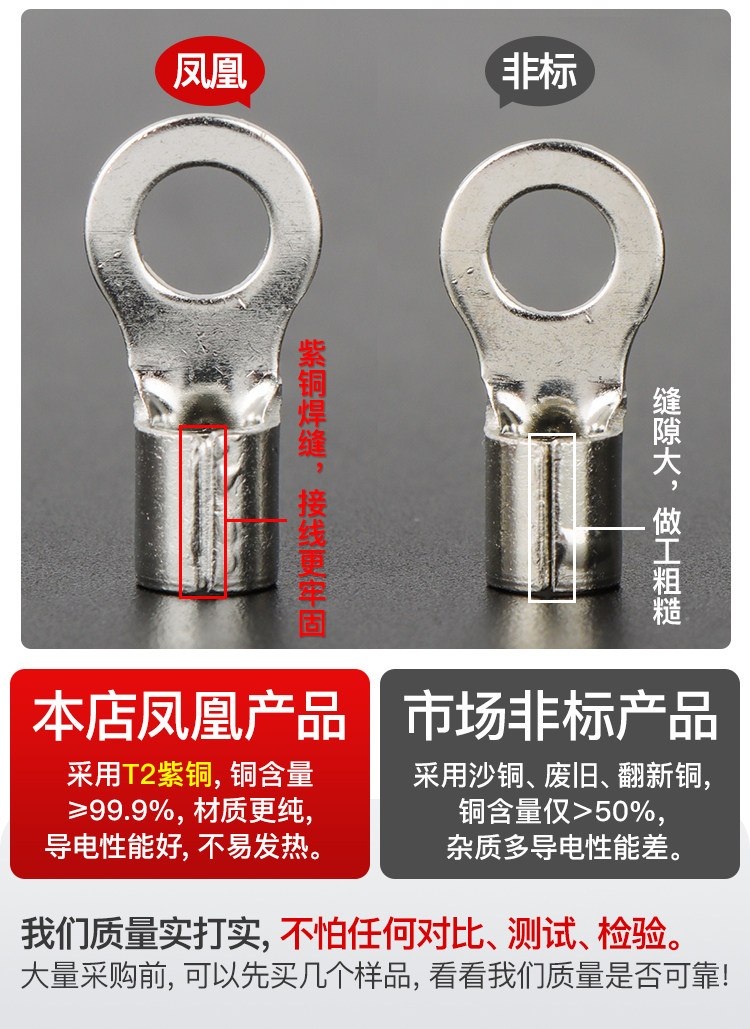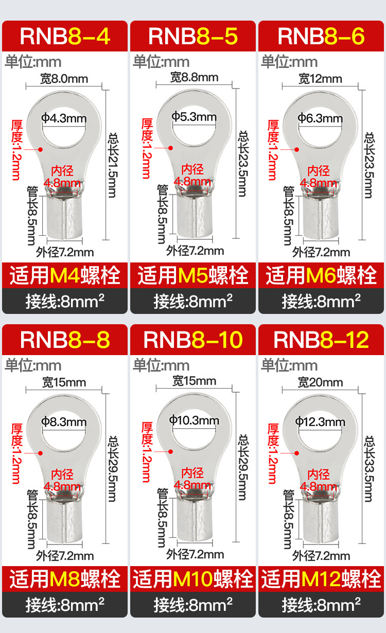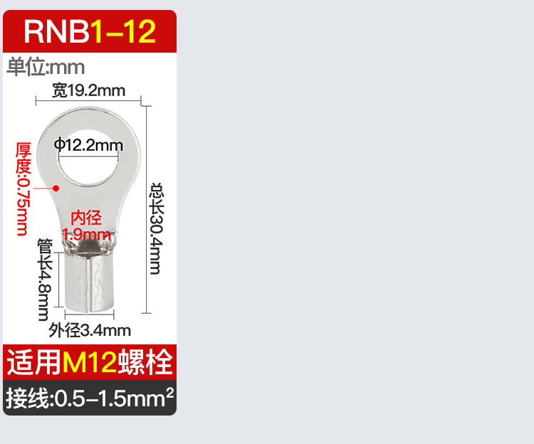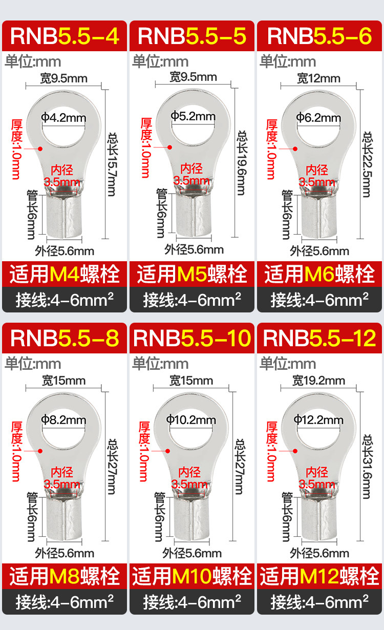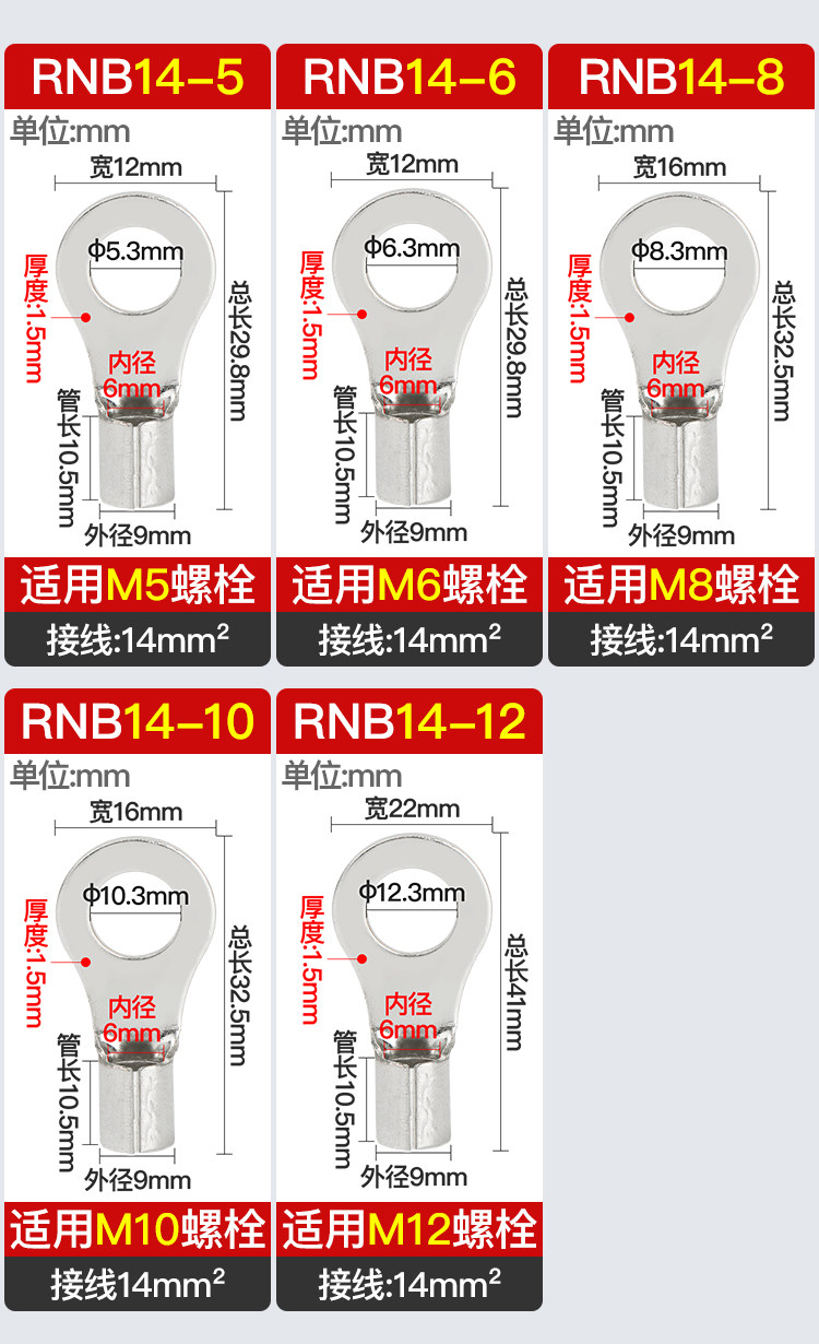 Genuine Phoenix Rnb Round Terminal Block, Copper National Standard Copper Connector, Copper Wire Lug, Terminal Nose Type 0 Cold-Pressed Terminal