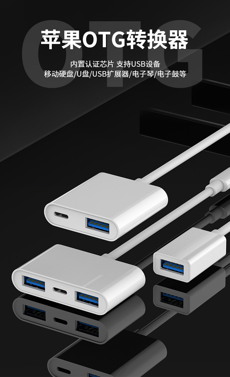 Color Classification Apple Otg with Cable[USB3.0]★External U Disk_Camera_Mouse Keyboard,Apple Otg with Cable Two-In-One[USB3.0 Interface]★Rechargeable,Apple Otg Three-In-One Cable[USB3.0_USB3.0 Interface]★Rechargeable,Apple Otg Adapter[Black],Apple Otg Adapter[Silver]