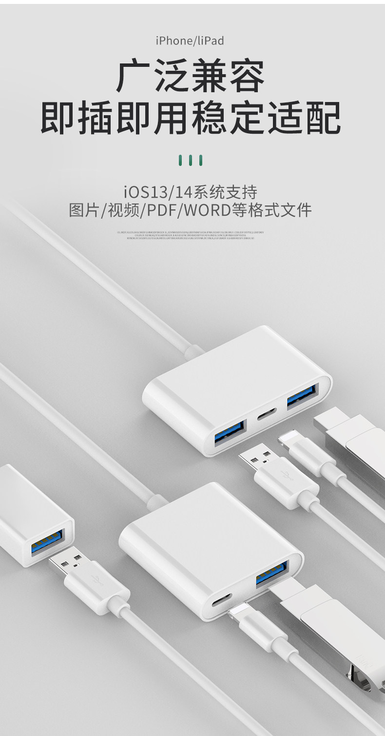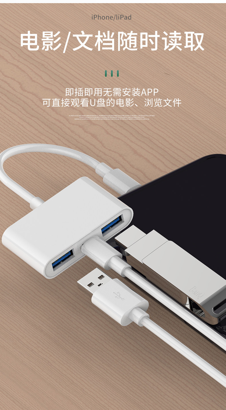Suitable for Apple Otg Adapter External USB Flash Drive Lightning to USB Flash Drive 3.0 Converter iPhone Mobile Phone iPad Tablet Computer Lightning Data Cable Two-In-One Charging Ipa