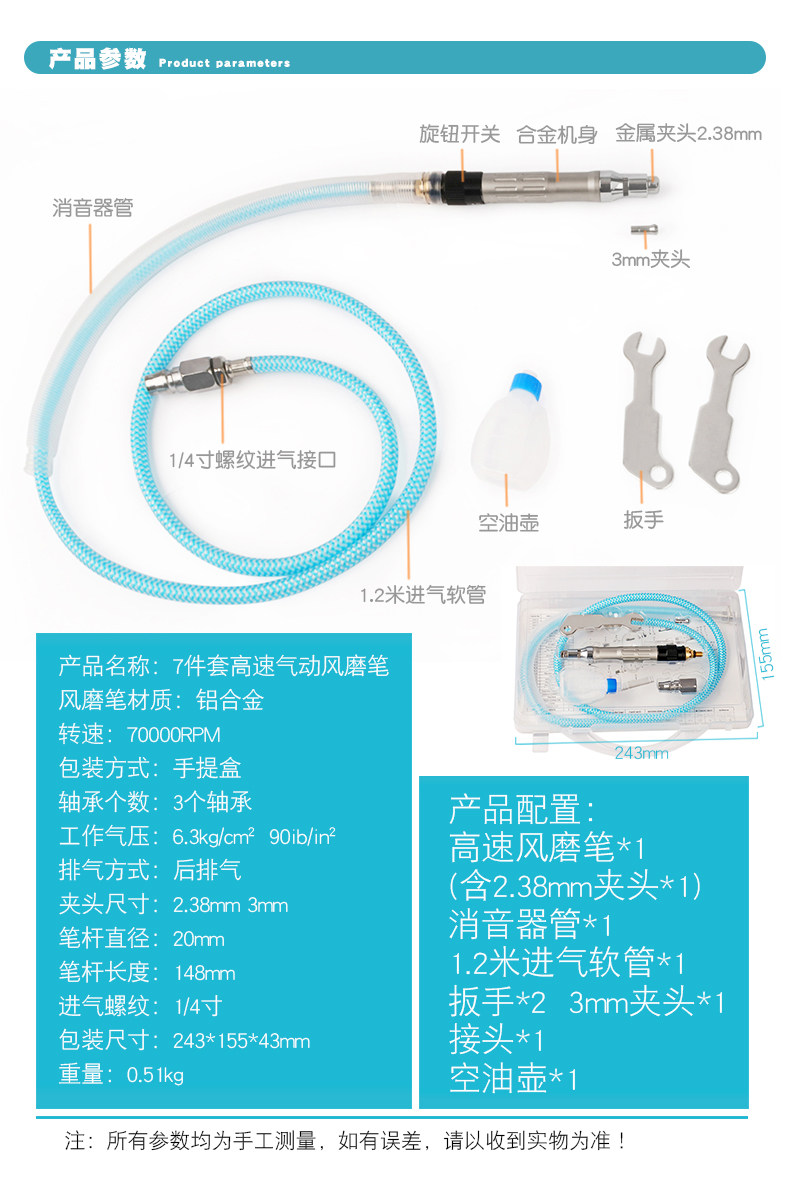 7-Piece Set of Pneumatic Grinder, Air Grinding Pen, Air Grinding, Industrial Grade Small Pneumatic Grinding, Polishing and Engraving Tools