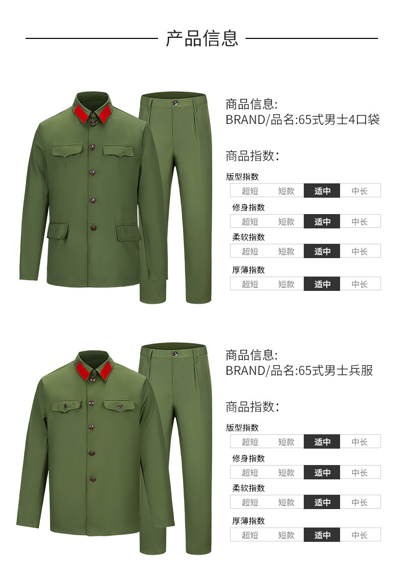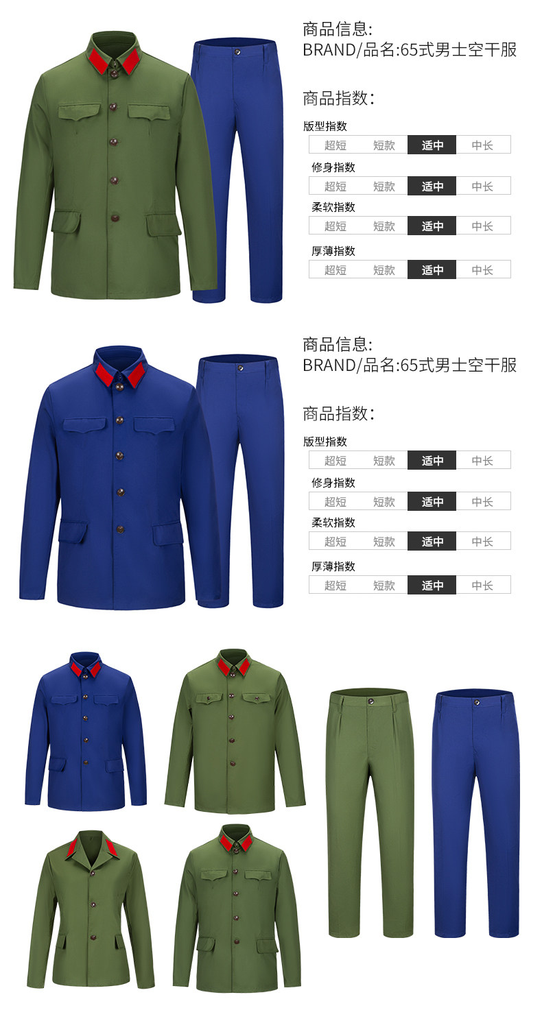 Authentic Queliang 65-style military suits, polyester military uniforms, veterans and comrades-in-arms party clothes, sixty-five men's and women's clothes
