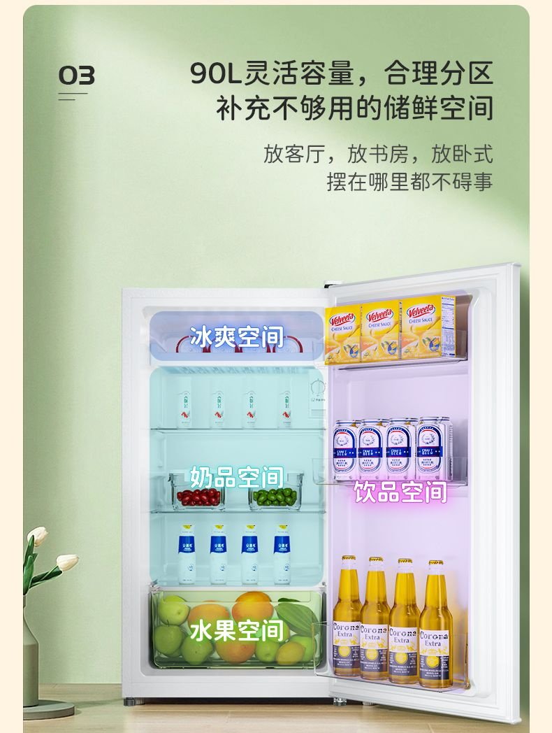Haier Single-Door Refrigerator Bc-90Ghsde0W9 First-Class Energy Efficiency Black Gold Purification Small Size for Home and Dormitory Use