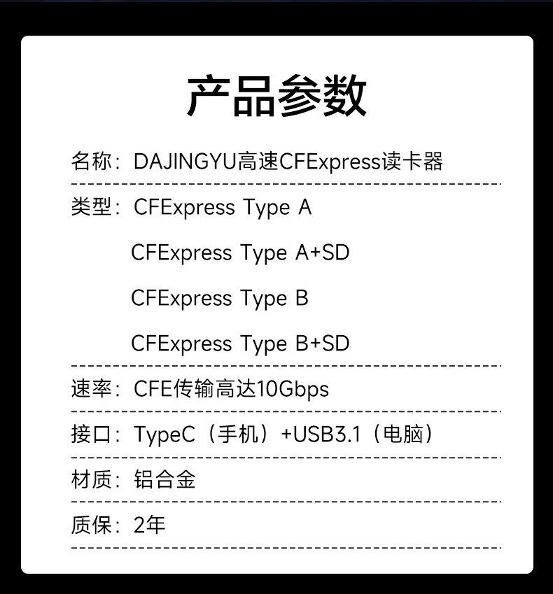 Color Classification [10Gbps High-Speed Cfe-B Card Reader] Suitable for Canon/Nikon/Panasonic/Fuji/Dji Cfeb Cards,[10Gbps High-Speed Card Reader Cfe-B Card/Sd Card Two-In-One* Asynchronous Card Reading] Suitable for Canon/Nikon/Panasonic/Fuji Cfb Cards,【10Gbps High-Speed Cf-Ea Card Reader】Specifically for Sony Camera Cf-Ea Cards / for Tops Ssd a Cards, Please Select the 2-in-1 Version,[10Gbps High-Speed Card Reader Cfe-A Card/Sd Card Two-In-One* Asynchronous Card Reading] Special for Sony Camera Cfea Card/Sd Card,[40Gbps Ultra-High-Speed Cfb Card Reader] Supports 4.0 High-Speed Cfeb Memory Card/Neutral Nikon-Canon-Fuji Camera Cfeb Card,[40Gbps Ultra-High-Speed Cfa Card Reader] Supports 4.0 High-Speed Cfea Memory Card/Neutral Sony Camera Cfa Card,[40Gbps Ultra-High-Speed Classic Cfa/Cfb Dual Card Slot Card Reader] Supports 4.0 High-Speed Cfa/Cfb Memory Card/Asynchronous Card Reading,[10Gbps High-Speed Card Reader Cfe-A Card/Sd Card Two-In-One* Asynchronous Card Reading-Gold Model] Special for Sony Camera Cfa Card (Usb3.2/Typec High-Speed Transmission),[10Gbps High-Speed Cfea Card Reader-Gold Model] Special for Sony Camera Cfa Card (Usb3.2/Typec High-Speed Transmission),[10Gbps High-Speed Cfeb Card/Sd Card Two-In-One - Gold Model] (Usb3.2/Typec Dual Interface)/Suitable for Nikon, Canon and Fuji Camera Cfb Cards,[10Gbps High-Speed Cfeb Card Reader-Gold Model] (Usb3.2/Typec Dual Interface)/Suitable for Nikon, Canon and Fuji Camera Cfb Cards,【10Gbps High-Speed Sony Cf/Cfe/Cfexpress Card Reader - Digital Display Magnetic Design】High-Speed Transfer / Convenient Card Reading - Data Storage and Transfer at a Glance,【10Gbps High-Speed Nikon Canon Fuji Cf/Cf-E Card Reader - Digital Display Magnetic Design】High-Speed Transfer / Convenient Card Reading - Data Storage and Transfer at a Glance