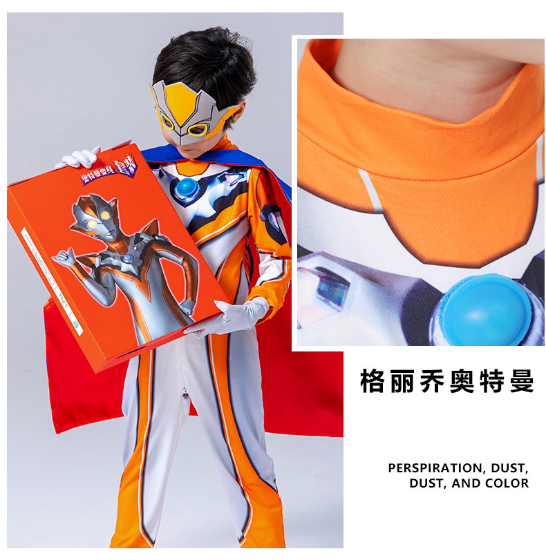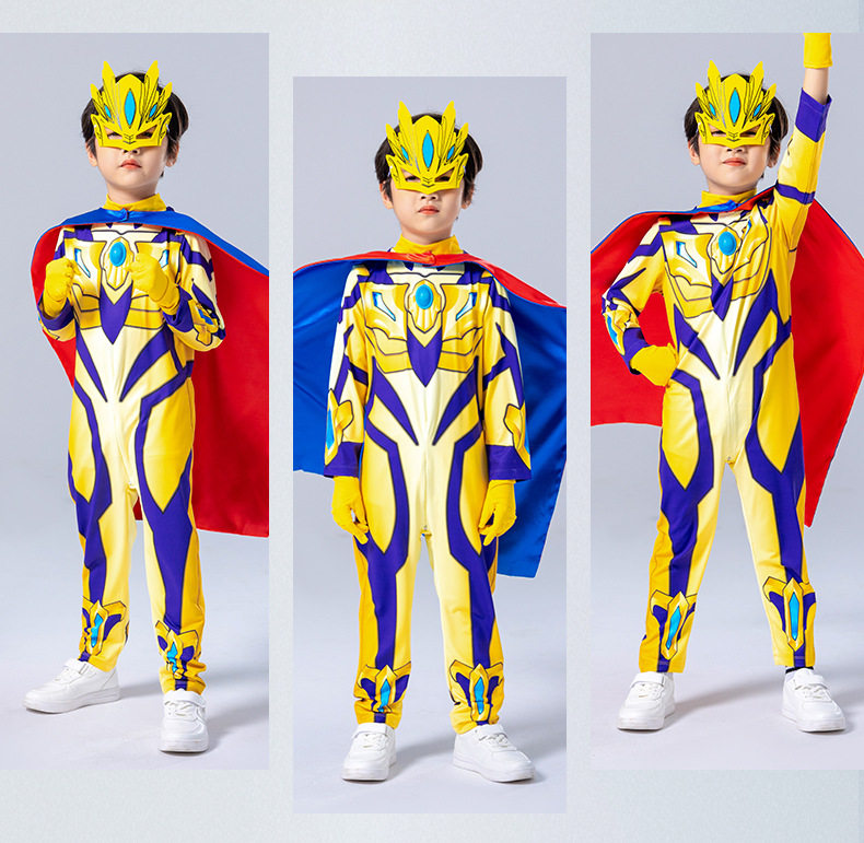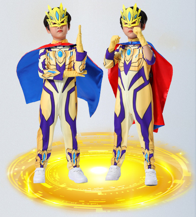 Authentic Ultraman Boys' Clothing, Golden Zero Luminous Cape, Boys' One-Piece Performance Halloween Kidsren's Costume