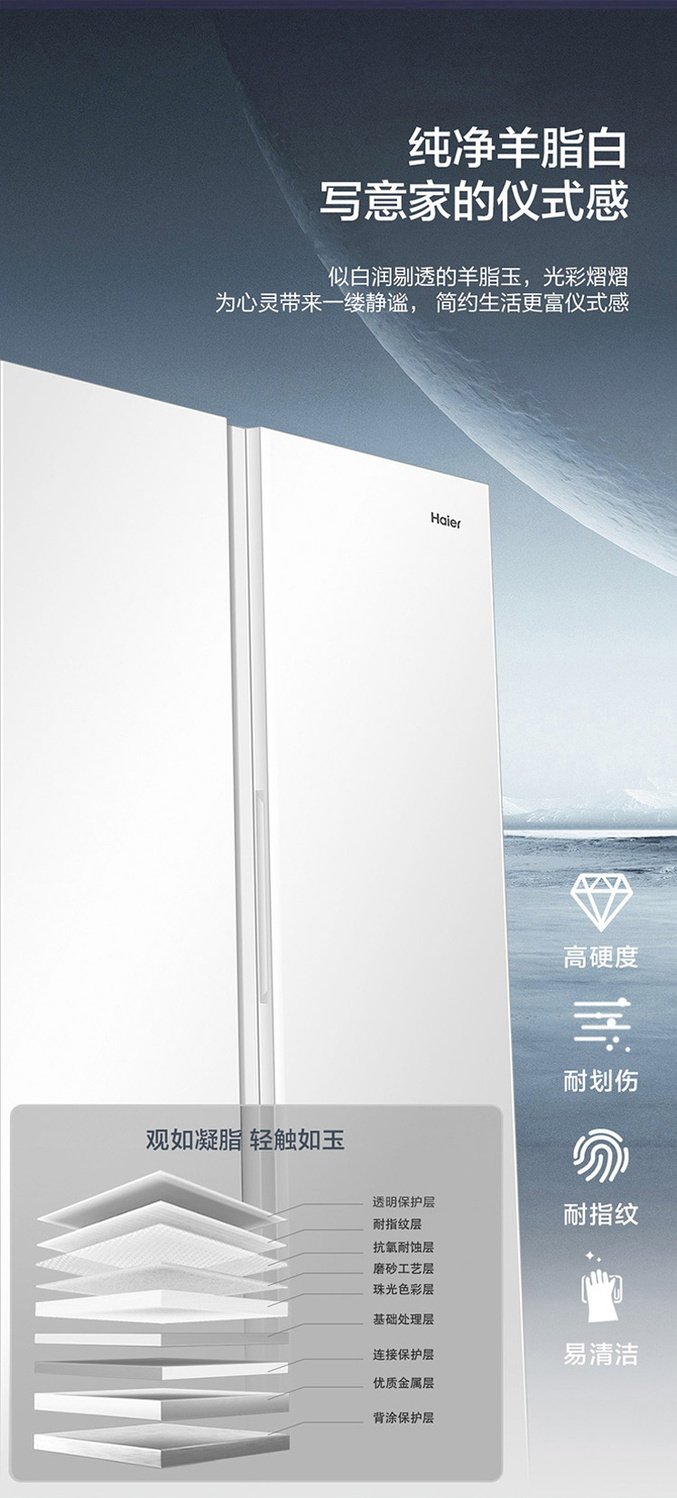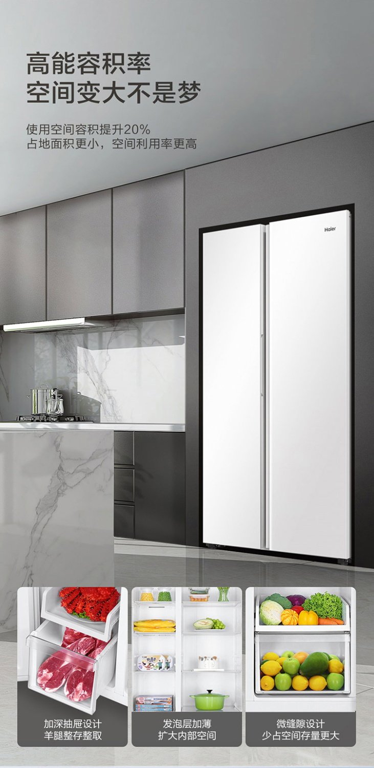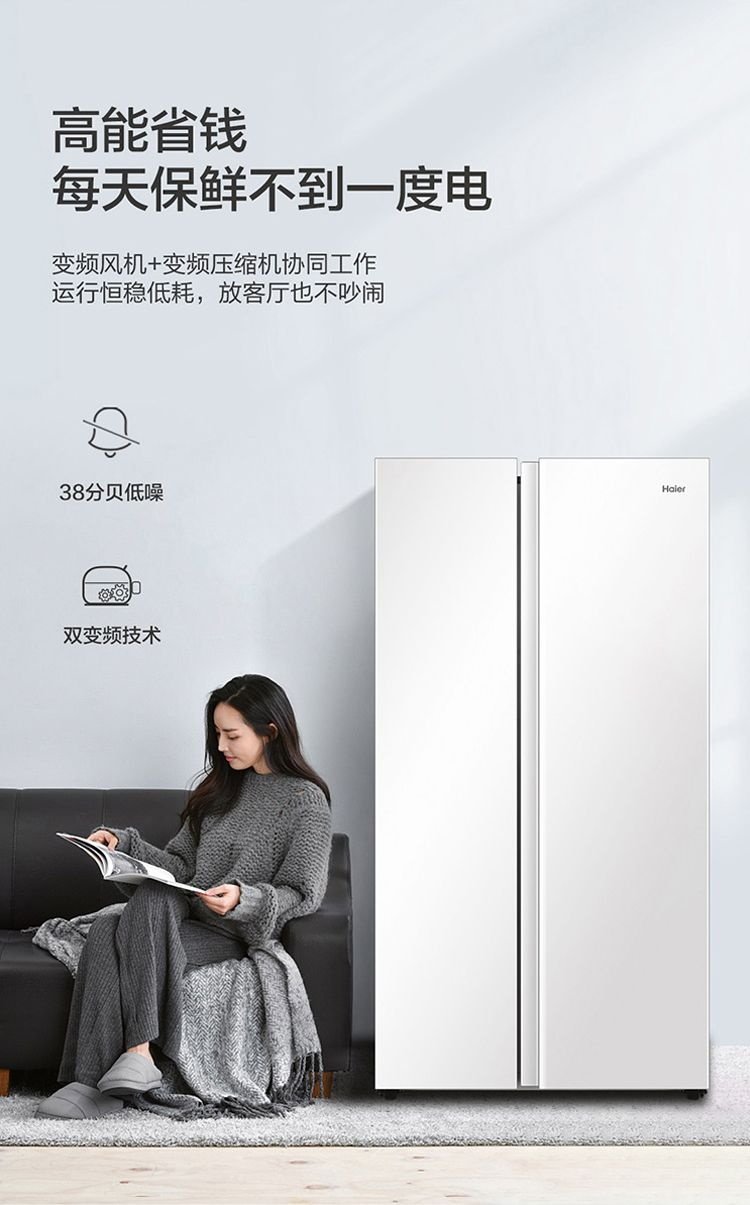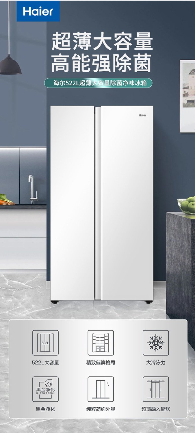 [New Product]Haier Refrigerator White 537 Liters Double Door Side-By-Side Large Freezer Black Gold Purification 522/526 Inverter