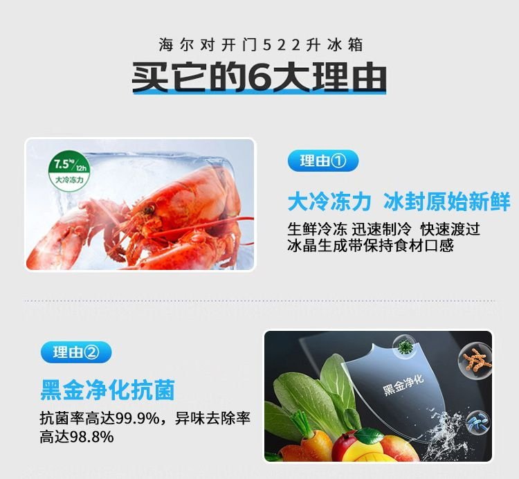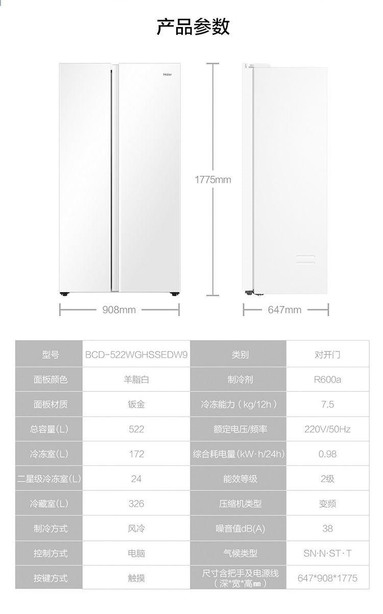 Color Classification [New Product Launch]BCD-537WGHSSEDWV,BCD-526WGHSSEDB9,Black Gold Purification + White Double Door + 522 Liters