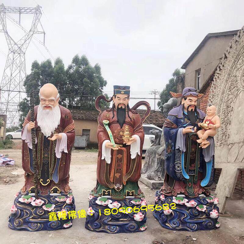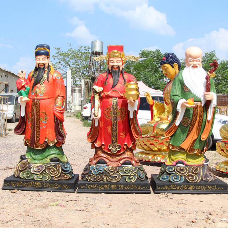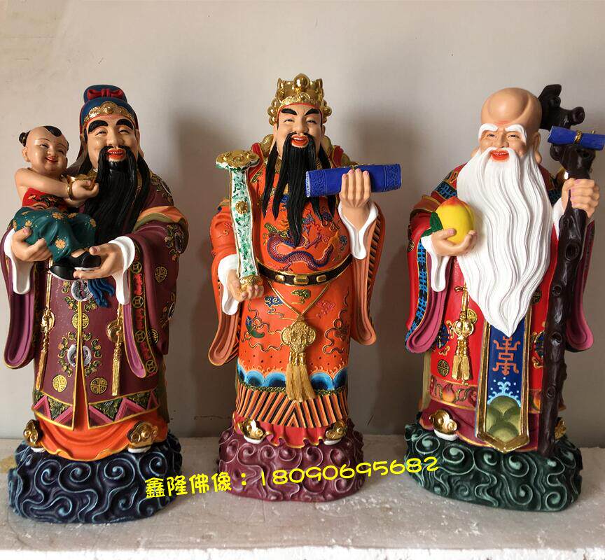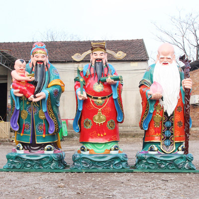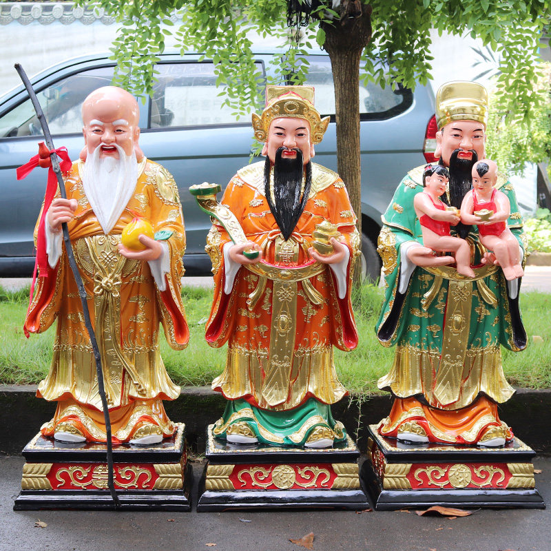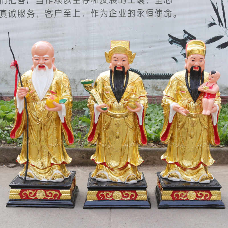 Three Stars of Fortune and Longevity God Statue: Stars of Fortune, Stars of Longevity, Stars of Good Fortune, Antarctic Immortal, Resin, Fiberglass, Wood Carving, Cast Bronze Ornament