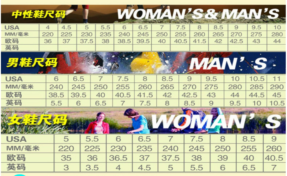 China (cm) 36 - 37 38 - 39 40 - 42 43 - 44 45 - 47
