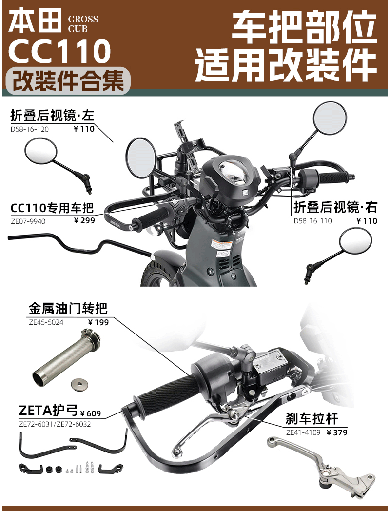 Suitable for Honda Honda Cc110 Off-Road Motorcycle Modification Kit, Brake Windshield, Side Frame, Footrest, Bow Guard
