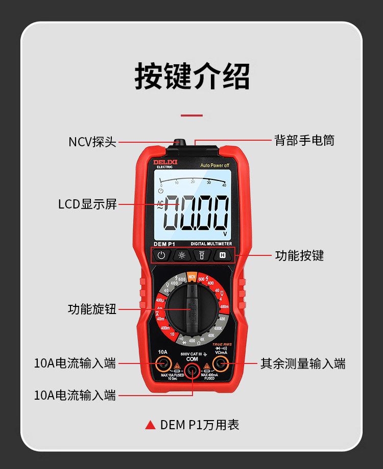 Delixi Multimeter Digital High-Precision Intelligent Anti-Burn Fully Automatic Digital Display Repair Multi-Function Multimeter 890C