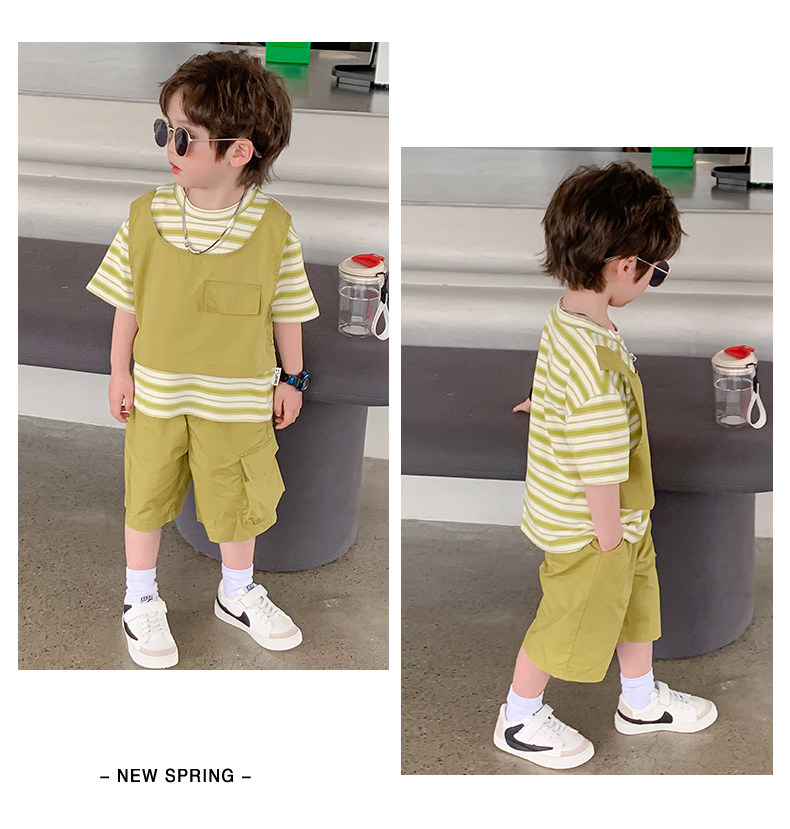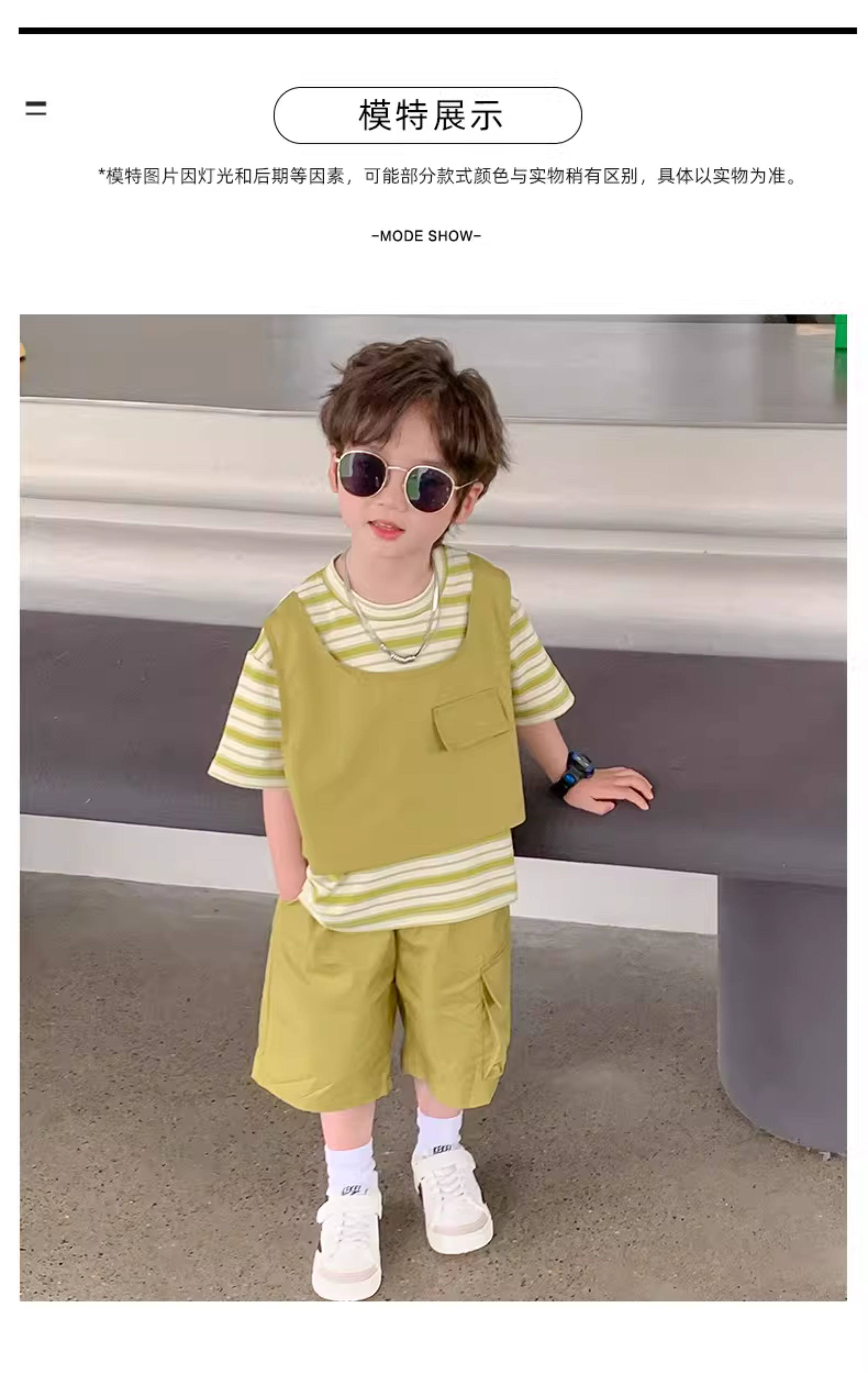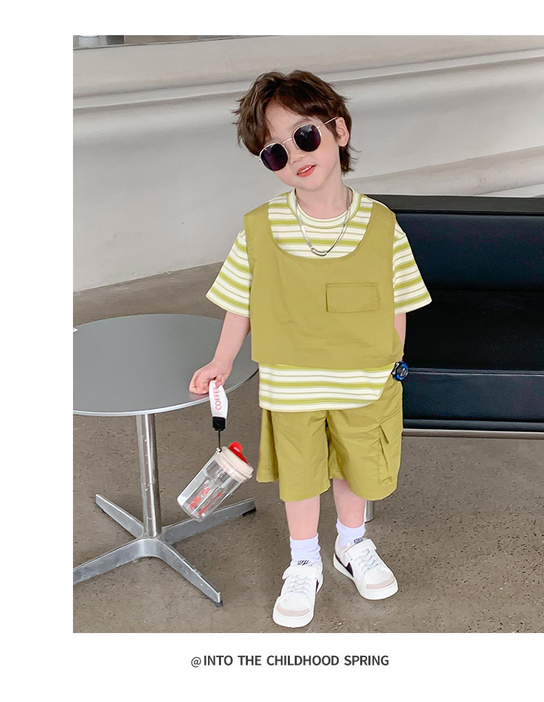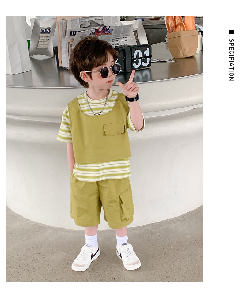 Children's Clothing Boys' Suit 2026 Summer New Korean Style Small and Medium-Sized Children's Fake Two-Piece Loose and Handsome Children's Short-Sleeved Summer Clothing