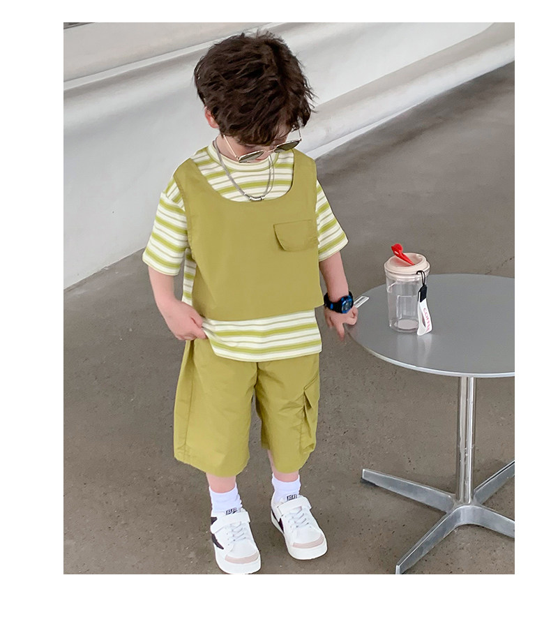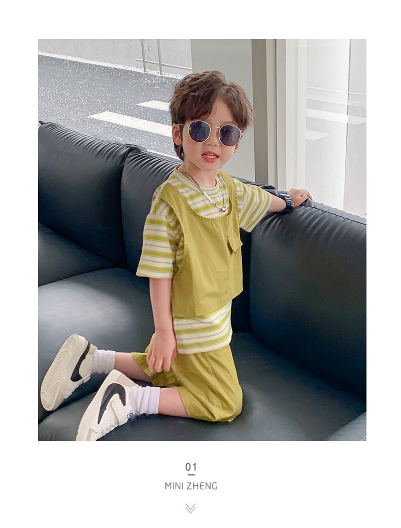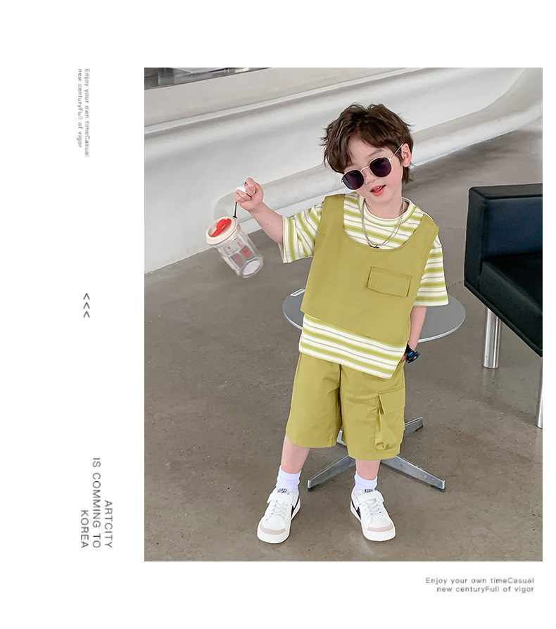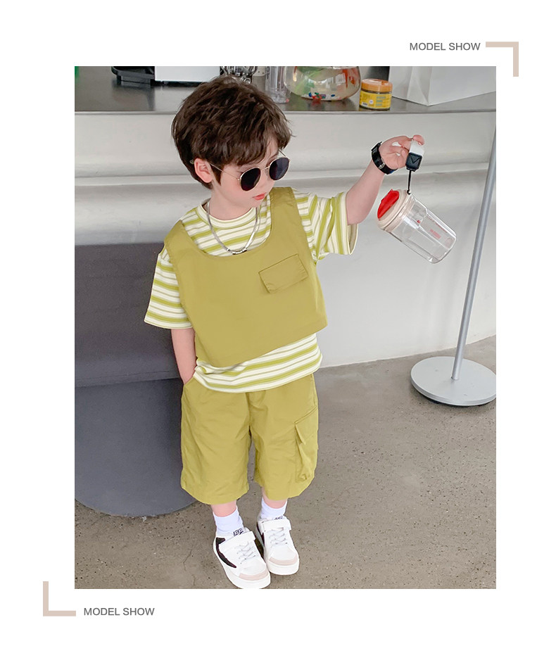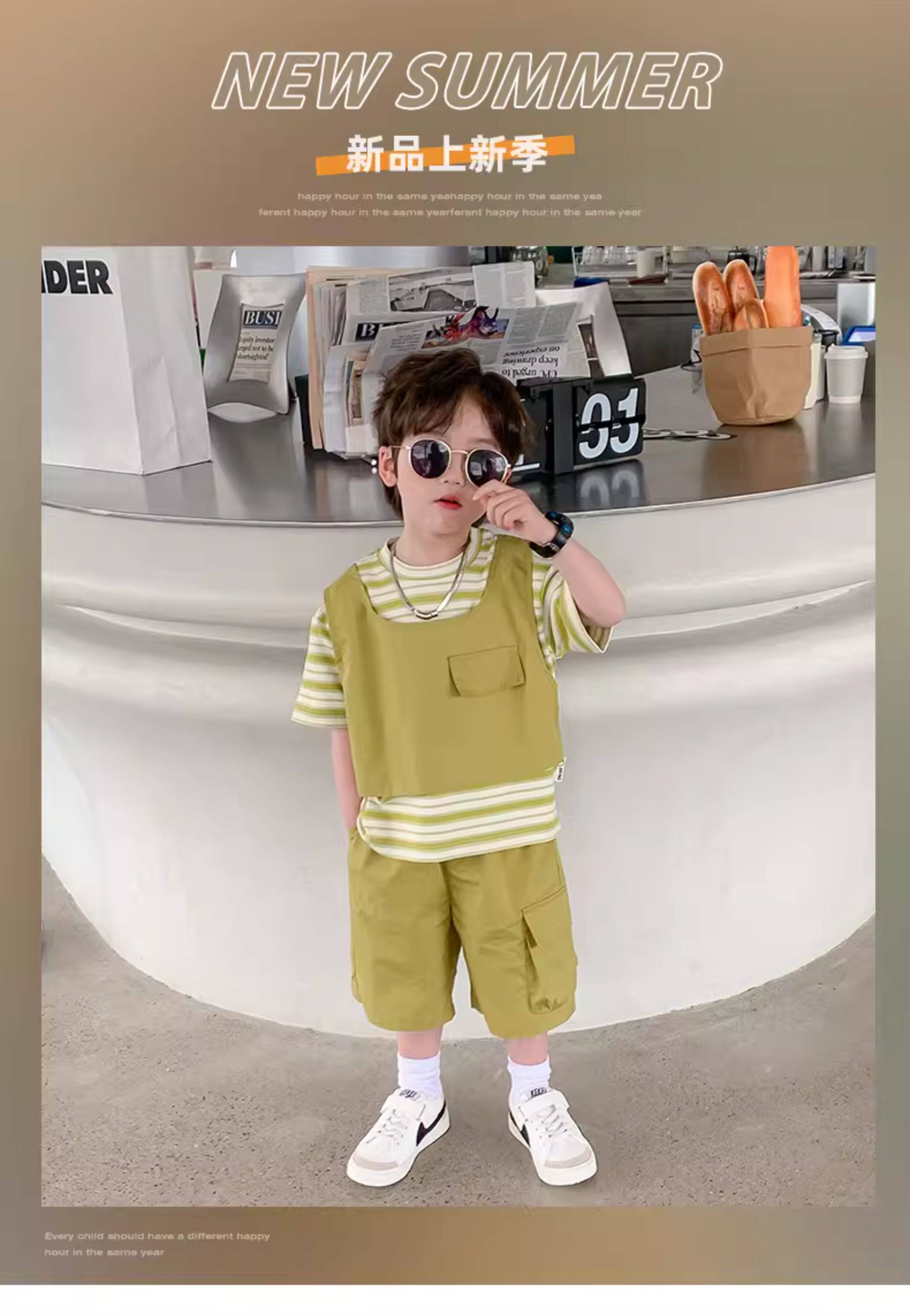 Children's Clothing Boys' Suit 2026 Summer New Korean Style Small and Medium-Sized Children's Fake Two-Piece Loose and Handsome Children's Short-Sleeved Summer Clothing