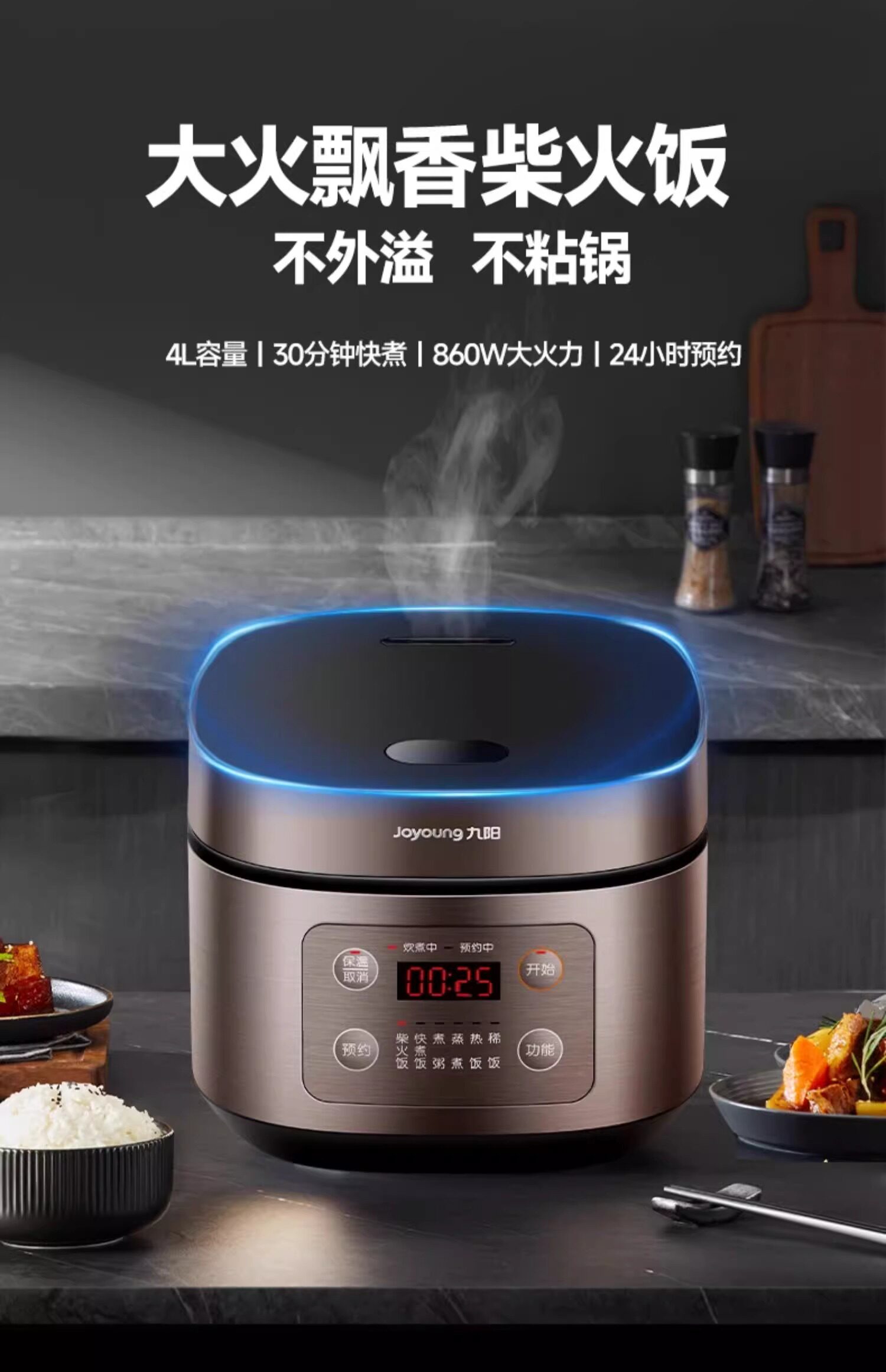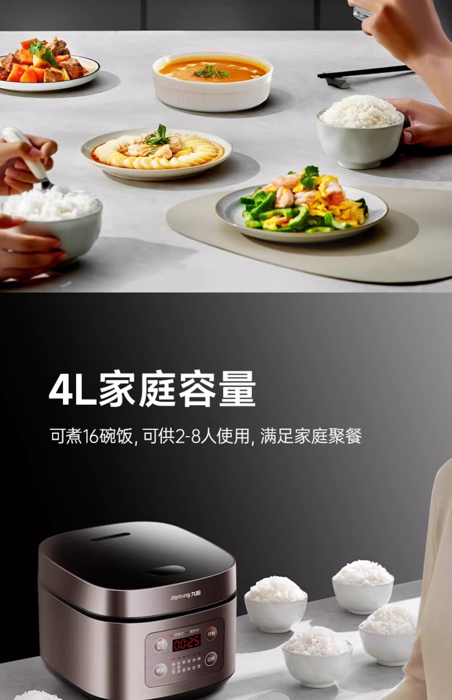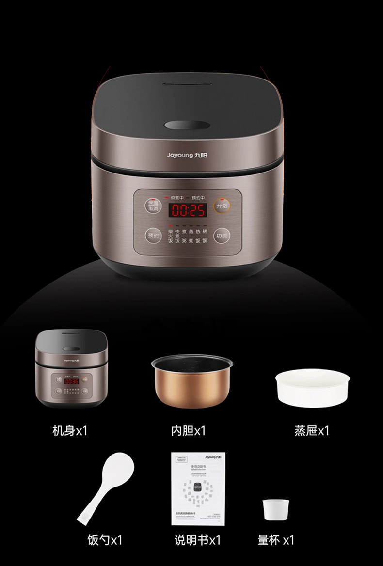 Joyoung Electric Rice Cooker for Home Use, 4L, Multifunctional, Non-Stick, Smart Rice Cooker for 3-4 People, New Model, Steaming and Cooking, Genuine Product, Large Capacity