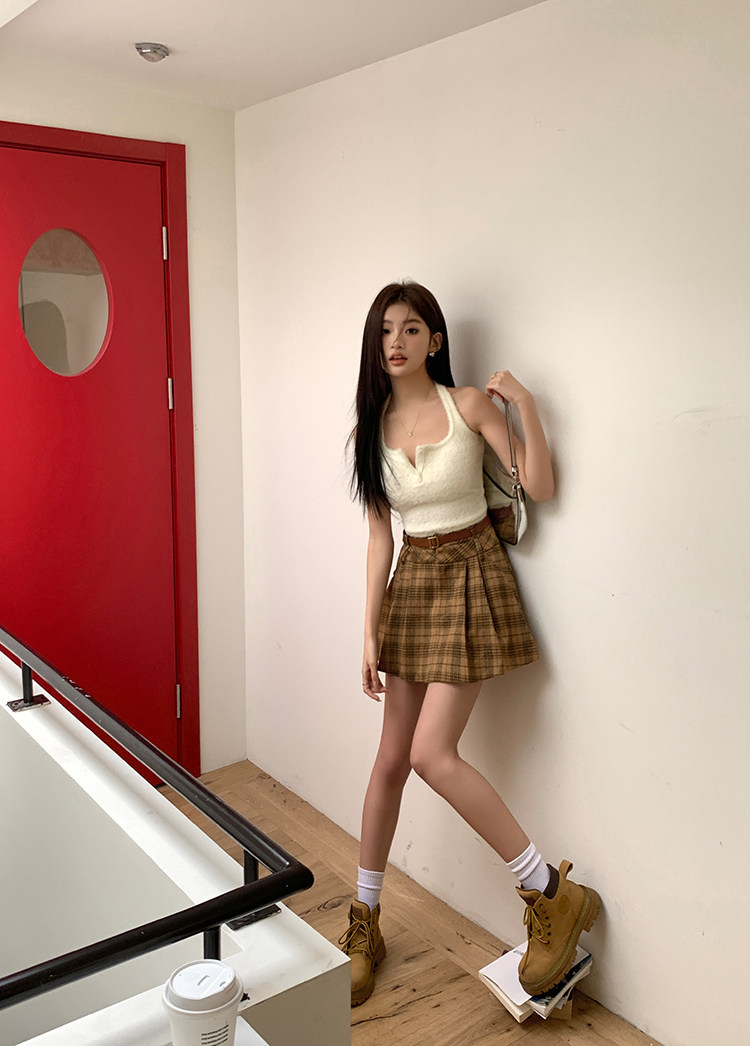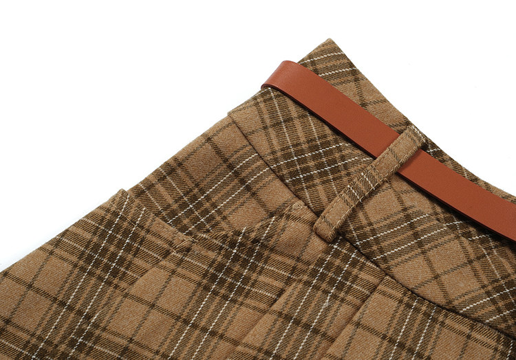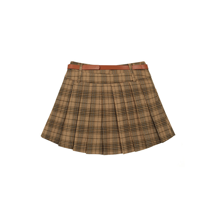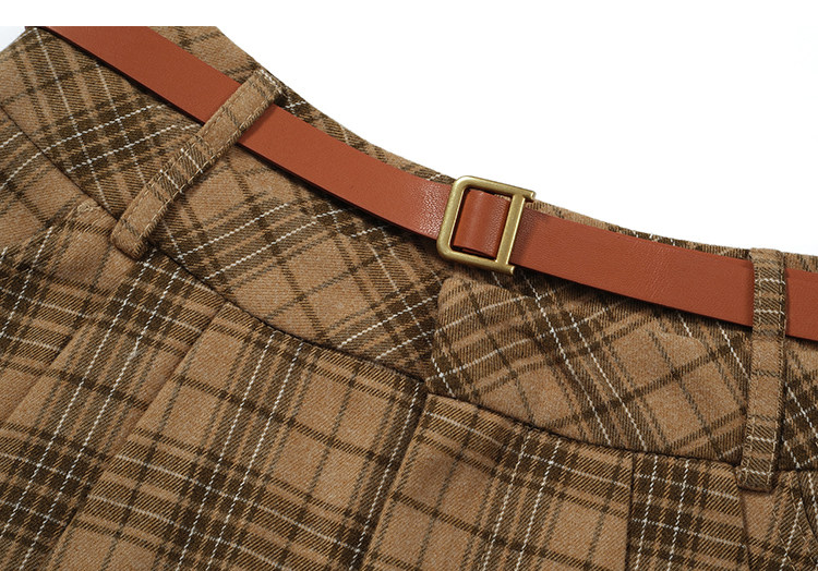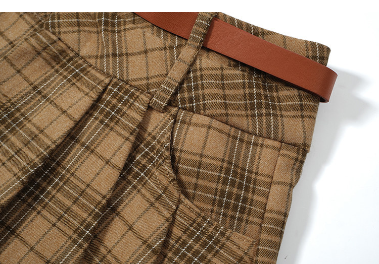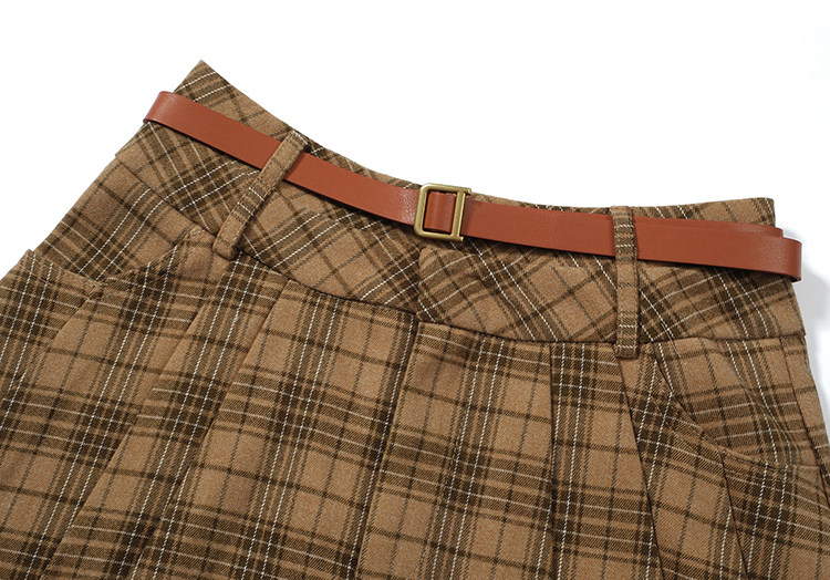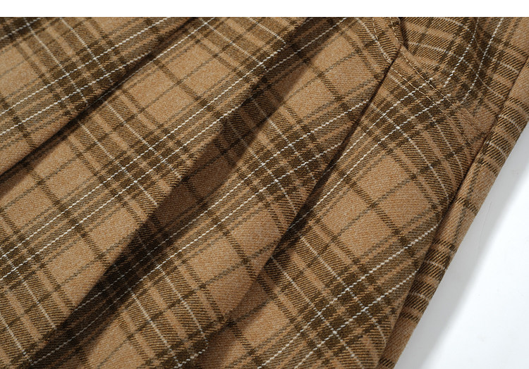 College Style Brown Plaid Woolen Pleated Skirt American Retro High-Waisted A-Line Short Skirt Half Skirt for Women Autumn