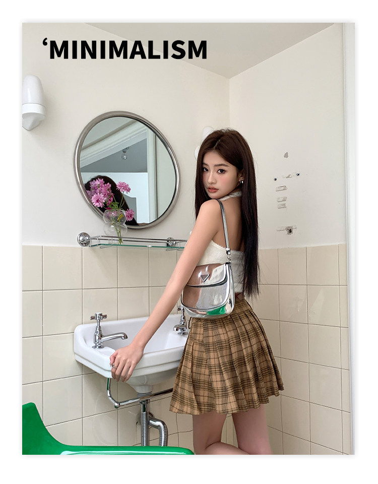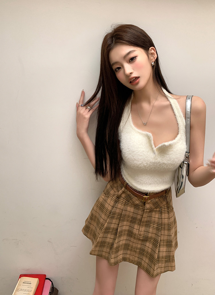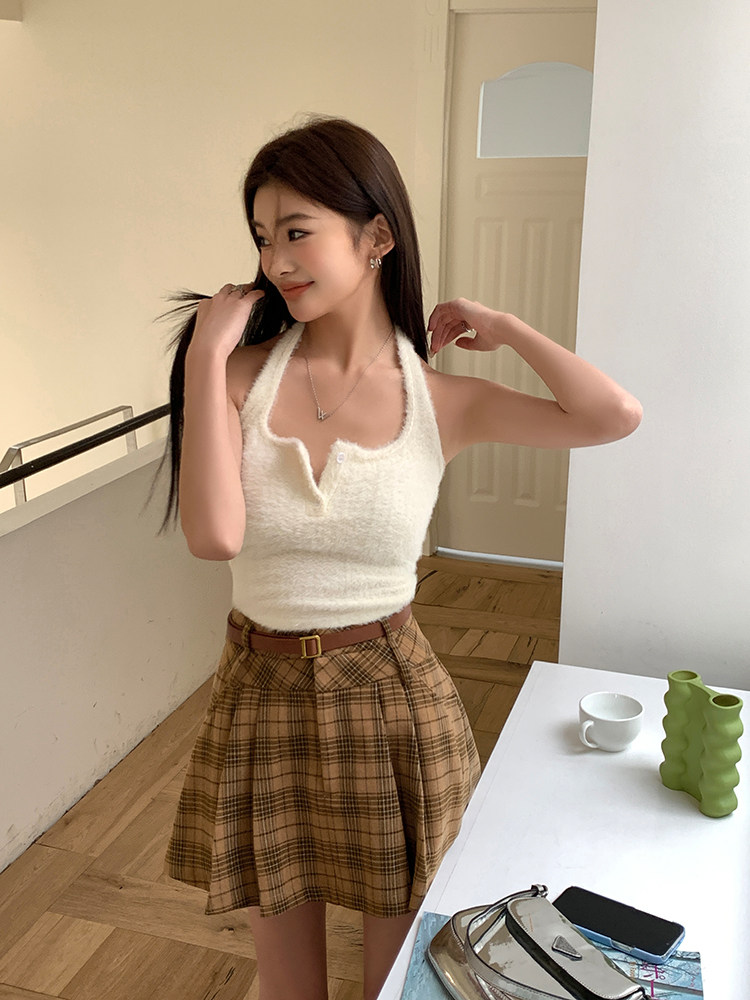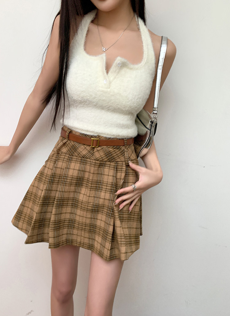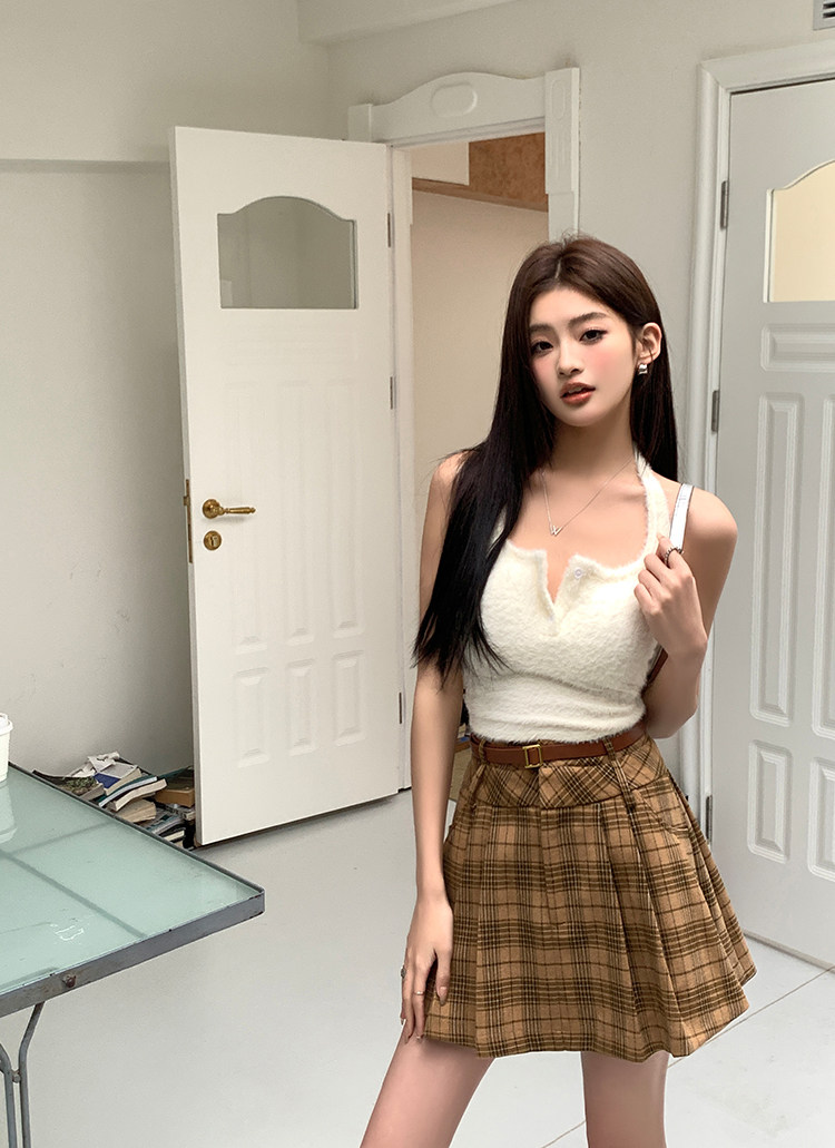 College Style Brown Plaid Woolen Pleated Skirt American Retro High-Waisted A-Line Short Skirt Half Skirt for Women Autumn