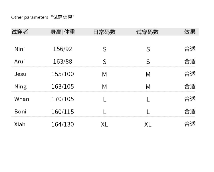 China (cm) 160-165/84-86 165-170 / 88-90 167-172 / 92-96 168-173 / 98-102 170-176 / 106-110