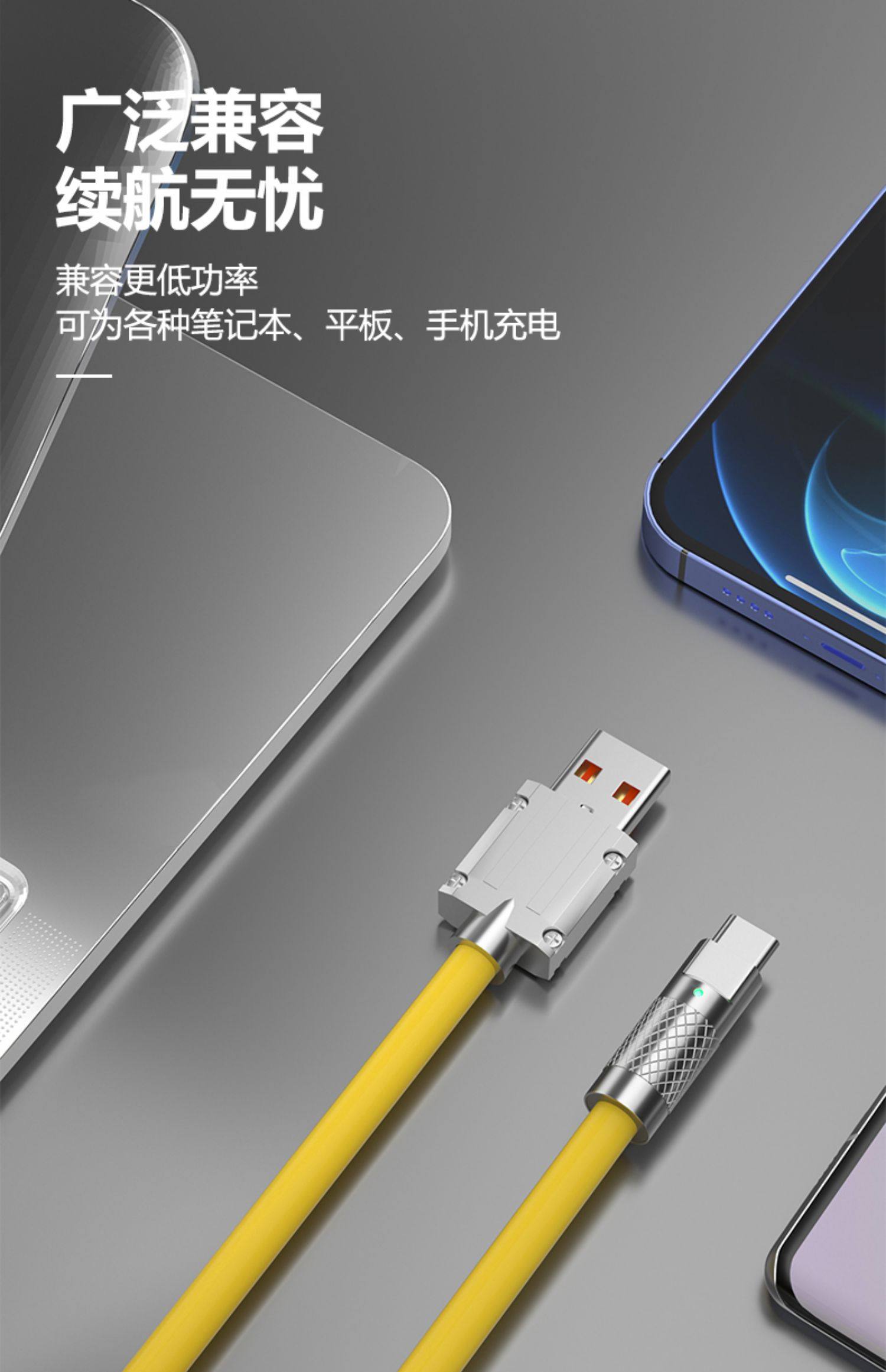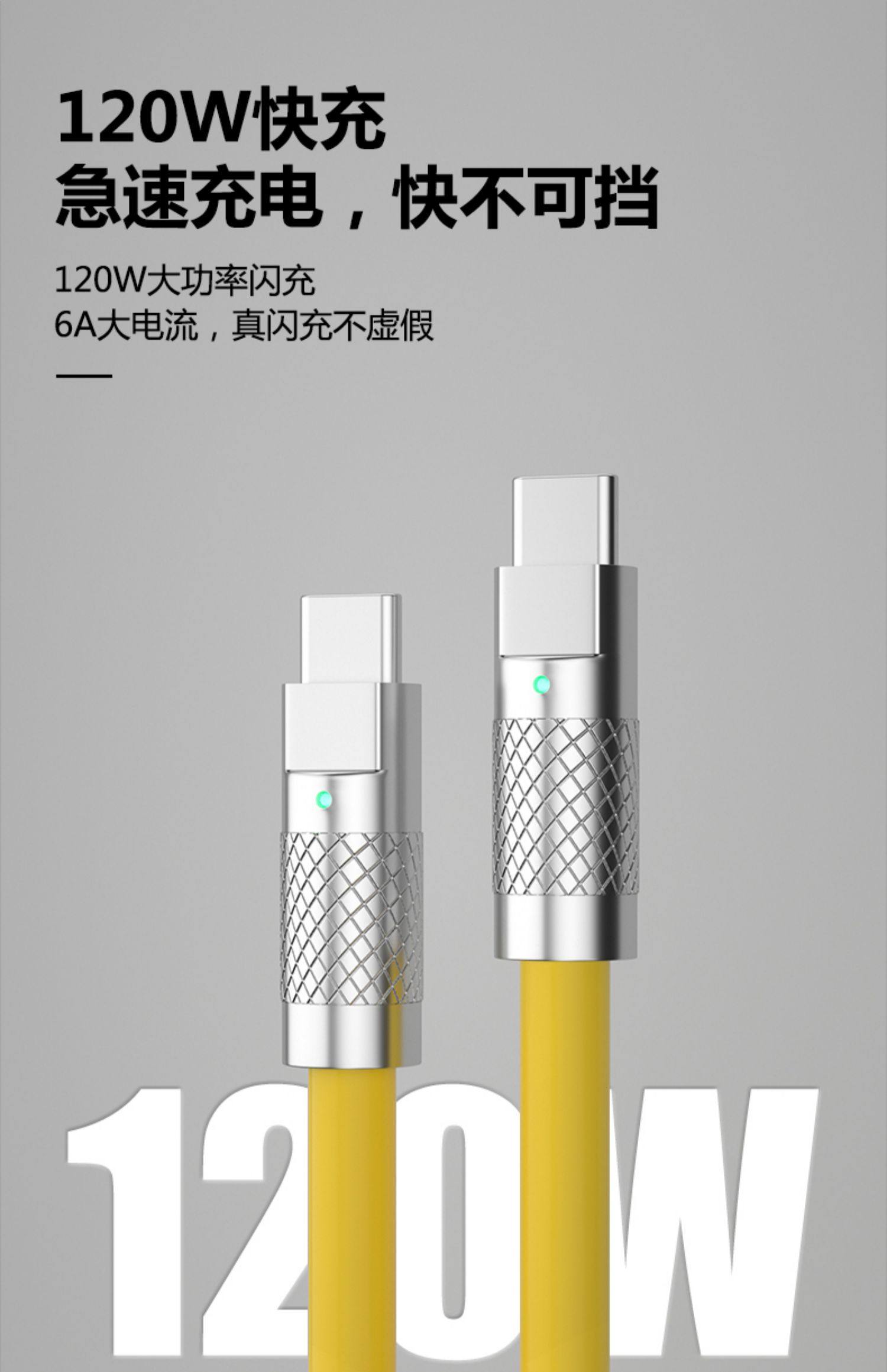 120W Super Fast Charging Dual Type-C Data Cable 6A Mecha Style Cable Compatible with Huawei, Xiaomi, Oppo, Honor, Vivo, Android, Apple Pd Phones, Flash Charging Tpc Charging Cable, Thickened and Extended, Geek Edition