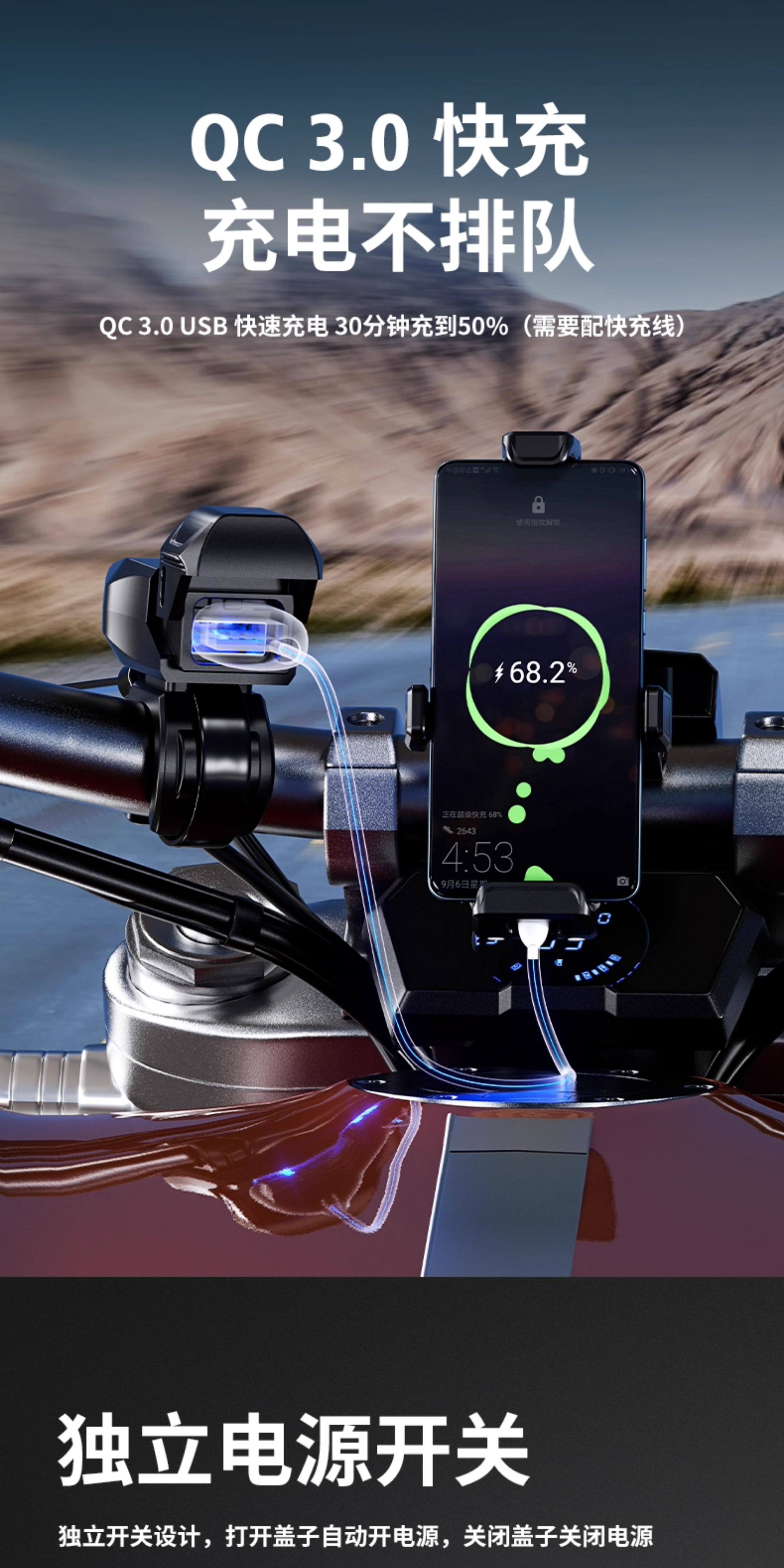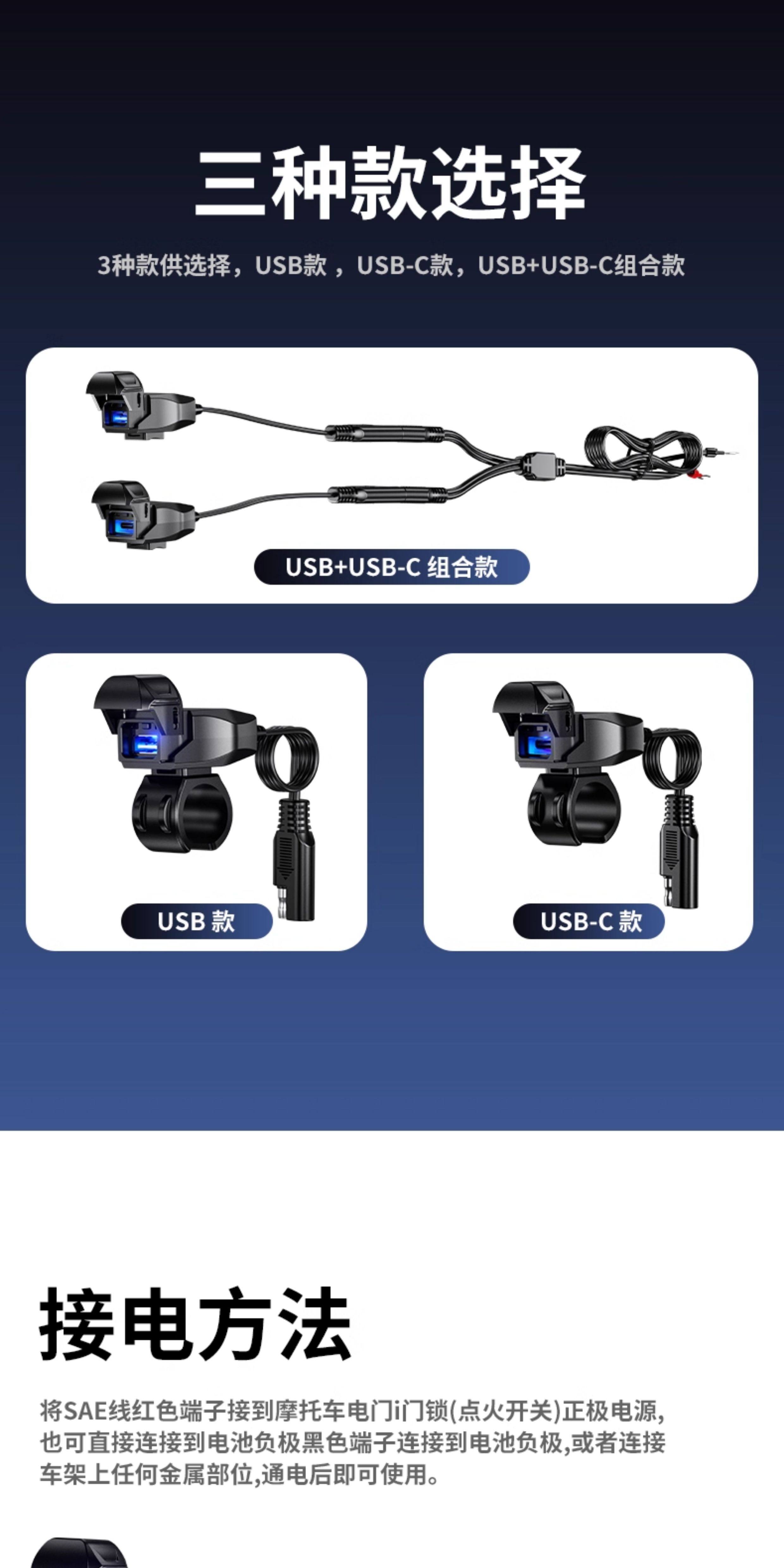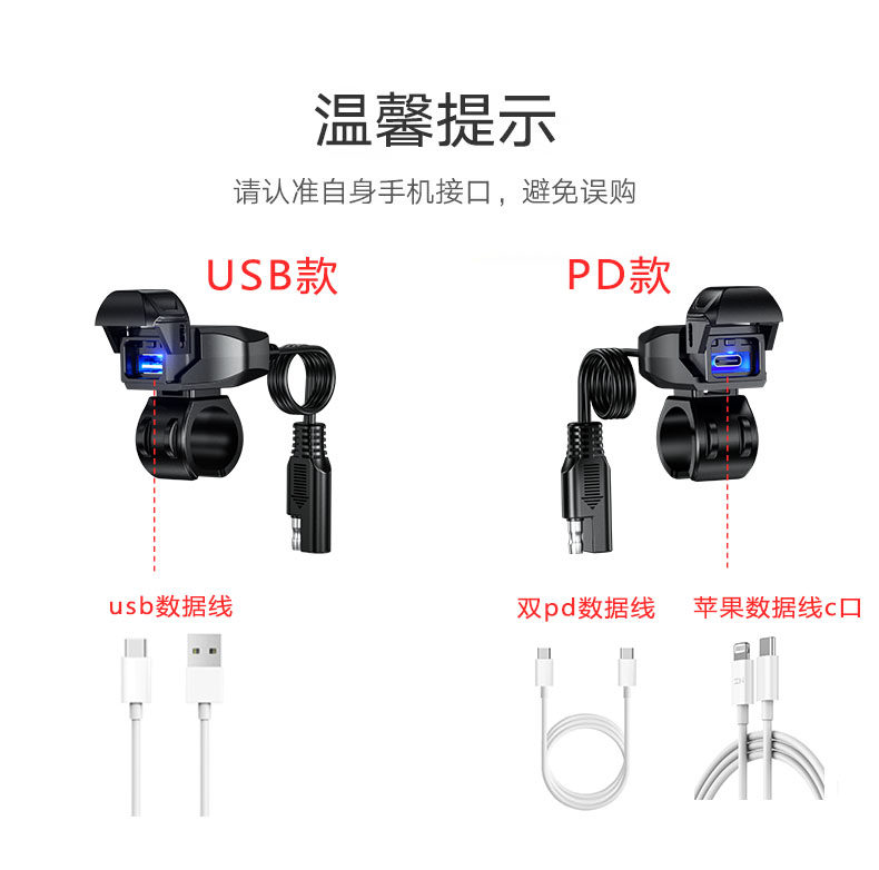 Sort by color Motorcycle standard version USB+type-c interface 30W waterproof cover+independent switch+voltage display,B10 motorcycle upgraded version USB interface 18W handlebar model* waterproof cover + independent switch + ambient light,B10 motorcycle upgraded version type-c port 36W handlebar model* waterproof cover + independent switch + ambient light,B10 Motorcycle Upgraded Version USB Interface 18W Rearview Mirror Model* Waterproof Cover + Independent Switch + Ambient Light,B10 motorcycle upgraded version type-c port 36W rearview mirror * waterproof cover + independent switch + ambient light,B10 Motorcycle Upgraded Version Dual USB Ports 36W Handlebar Model* Waterproof Cover + Independent Switch + Ambient Light,B10 motorcycle upgraded version USB+type-c 36W handlebar model*waterproof cover+independent switch+ambient light,B10 Electric Vehicle Special Version USB Interface 18W Handlebar Model*Waterproof Cover+Independent Switch+Ambient Light+2 Meter Adapter,B10 electric vehicle special version type-c port 36W handlebar model * waterproof cover + independent switch + ambient light + 2m adapter,B10 Electric Vehicle Special Version USB Interface 18W Rearview Mirror Type* Waterproof Cover + Independent Switch + Ambient Light + 2 Meter Adapter,B10 electric vehicle special version type-c port 36W rearview mirror * waterproof cover + independent switch + ambient light + 2m adapter,B11 motorcycle high-end version USB+PD port 54W+dual PD data cable,B11 motorcycle high-end version USB+PD port 54W+Apple data cable