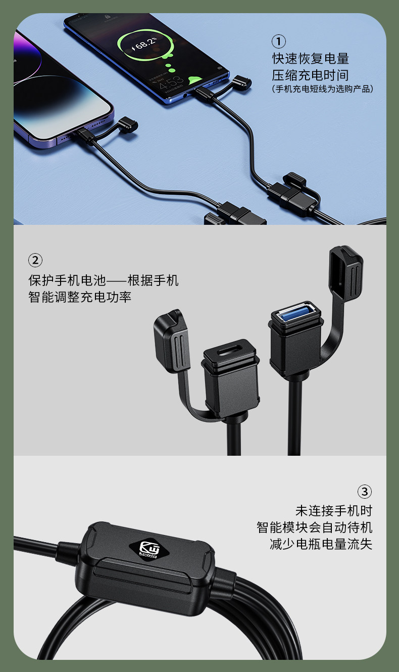Kaiweige motorcycle modified USB charging port with mobile phone charger and car charger PD port super fast charging and waterproof