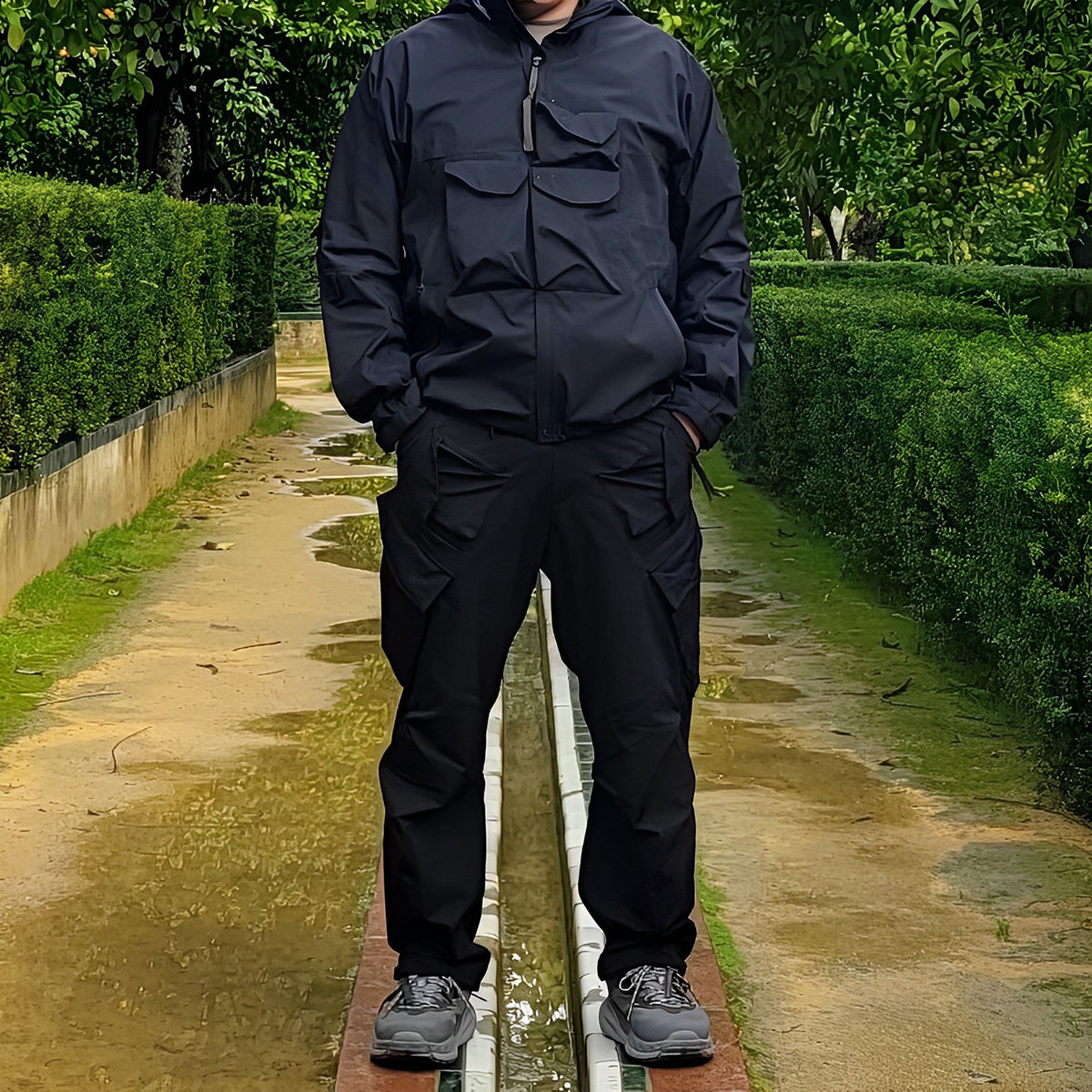 Njwn P44-Ds Multi-Pocket Functional Zipper Taped Waterproof Outdoor Loose Straight-Leg Pants, Not Acronym