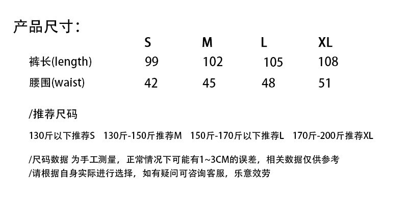 Outseam (cm) 99 cm 101.5 cm 104 cm 106.5 cm 109 cm