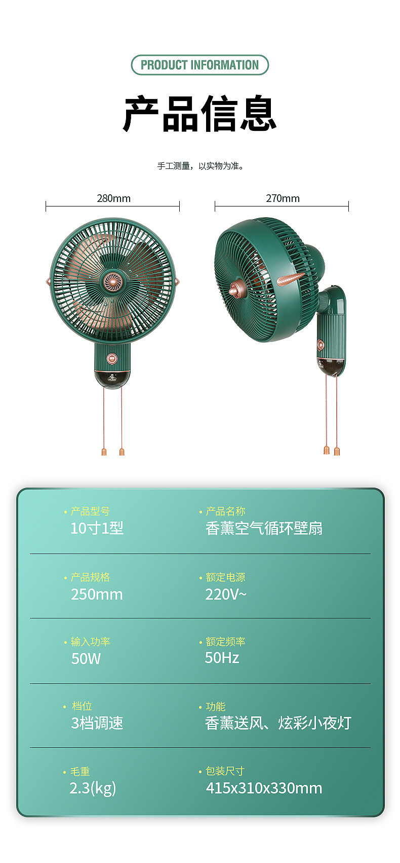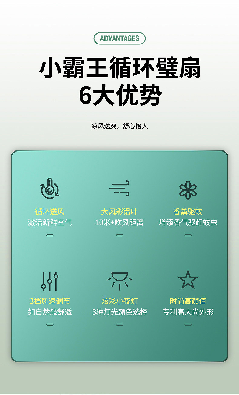 Color Classification Air Circulation Wall Fan Green 8inch (with Aromatherapy Light),Air Circulation Wall Fan Green 10inch (with Aromatherapy Light)