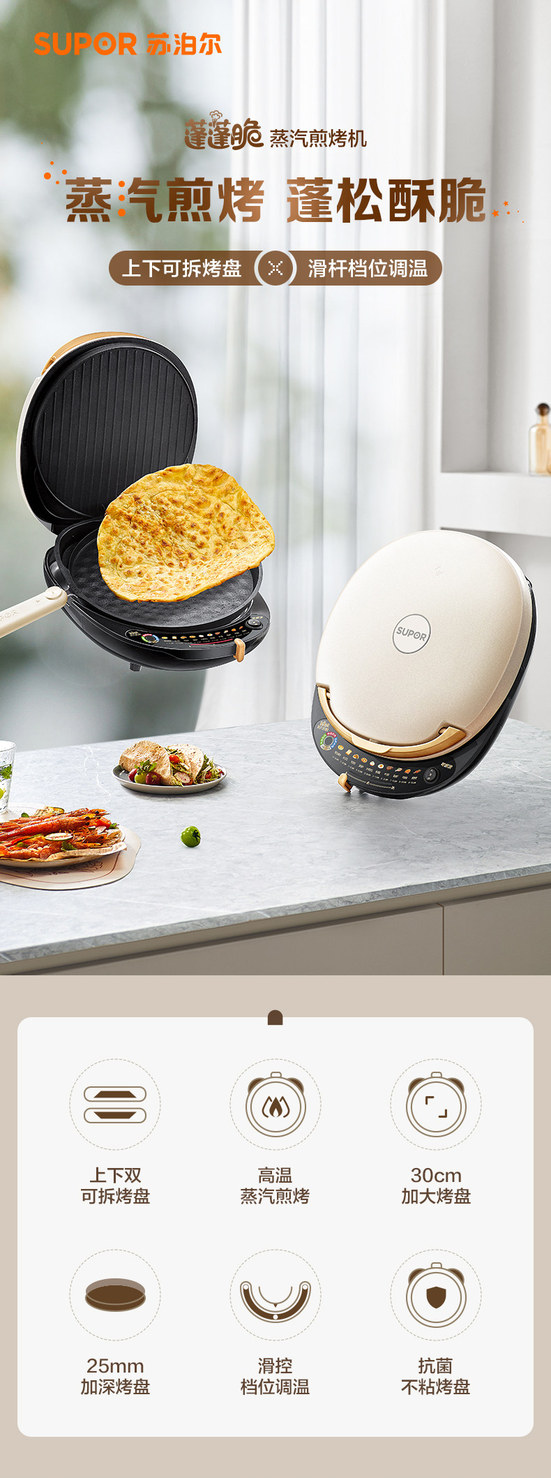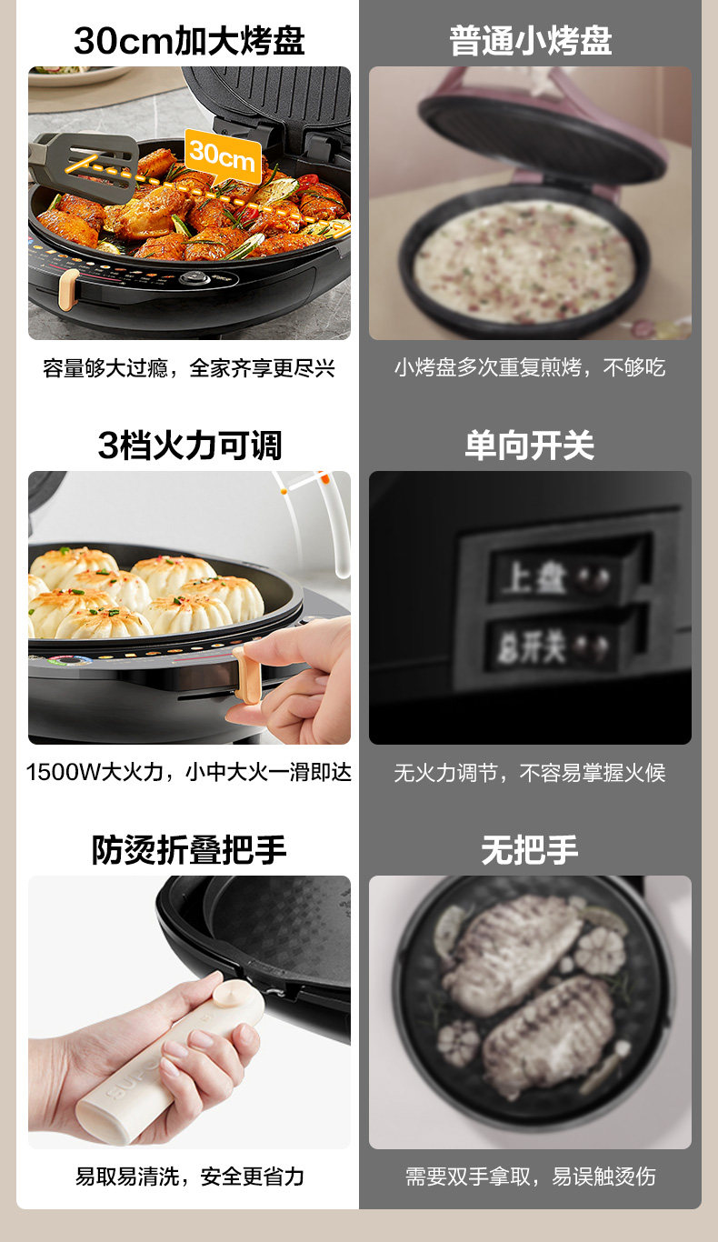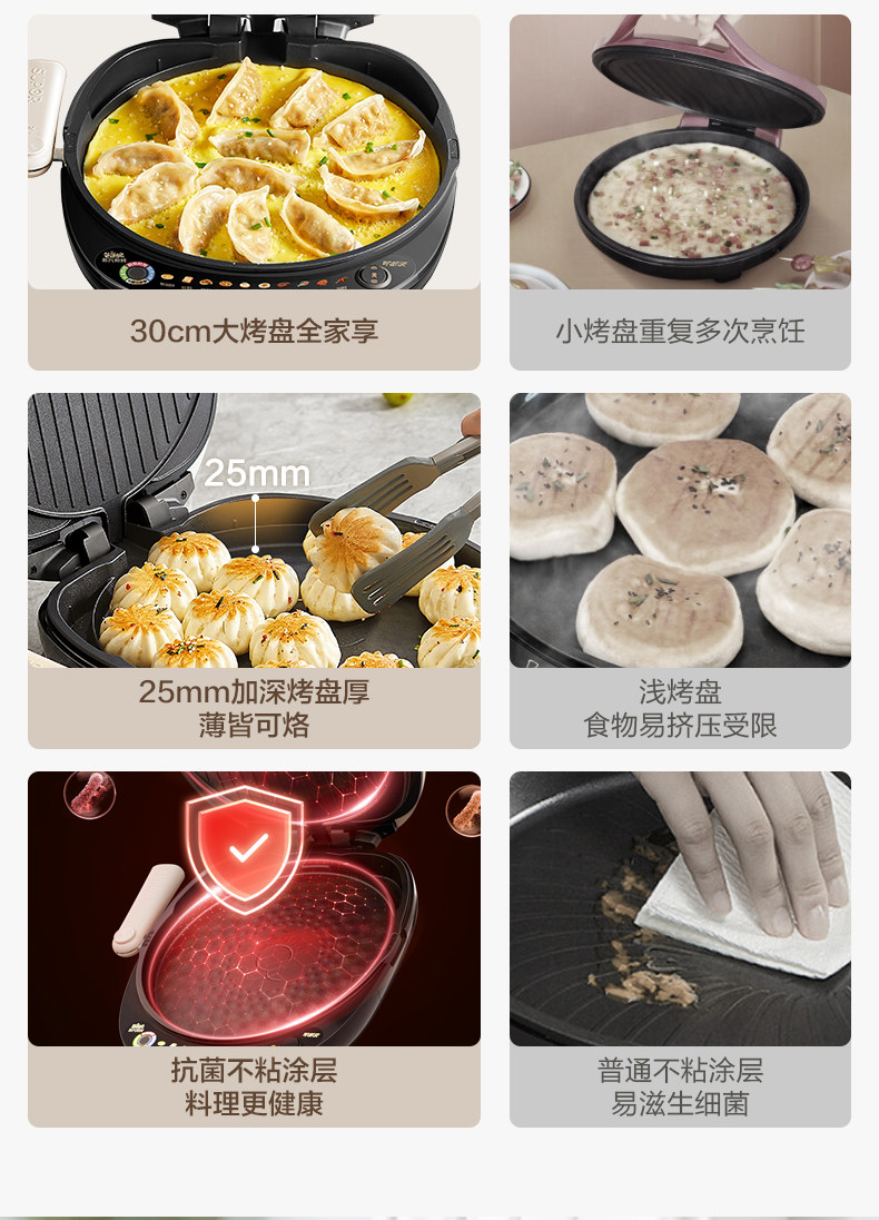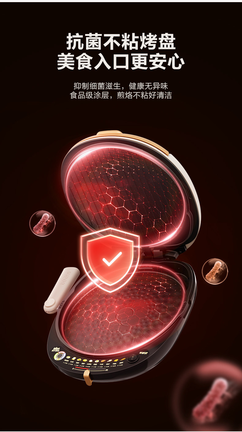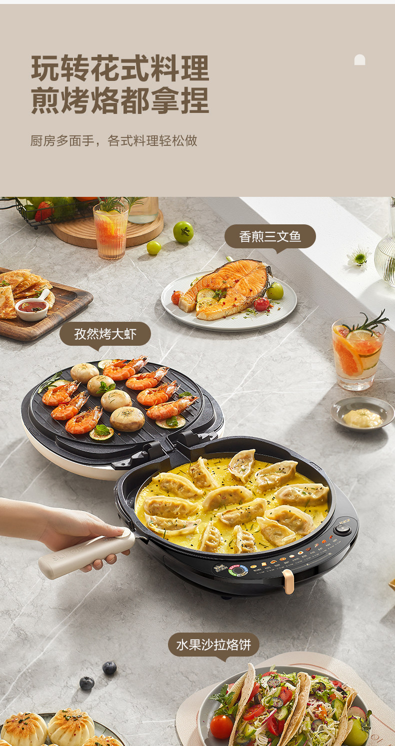 Supor Electric Griddle with Double-Sided Heating for Home Use, Fully Automatic, Detachable and Washable, Enlarged and Deepened Griddle, Genuine Product