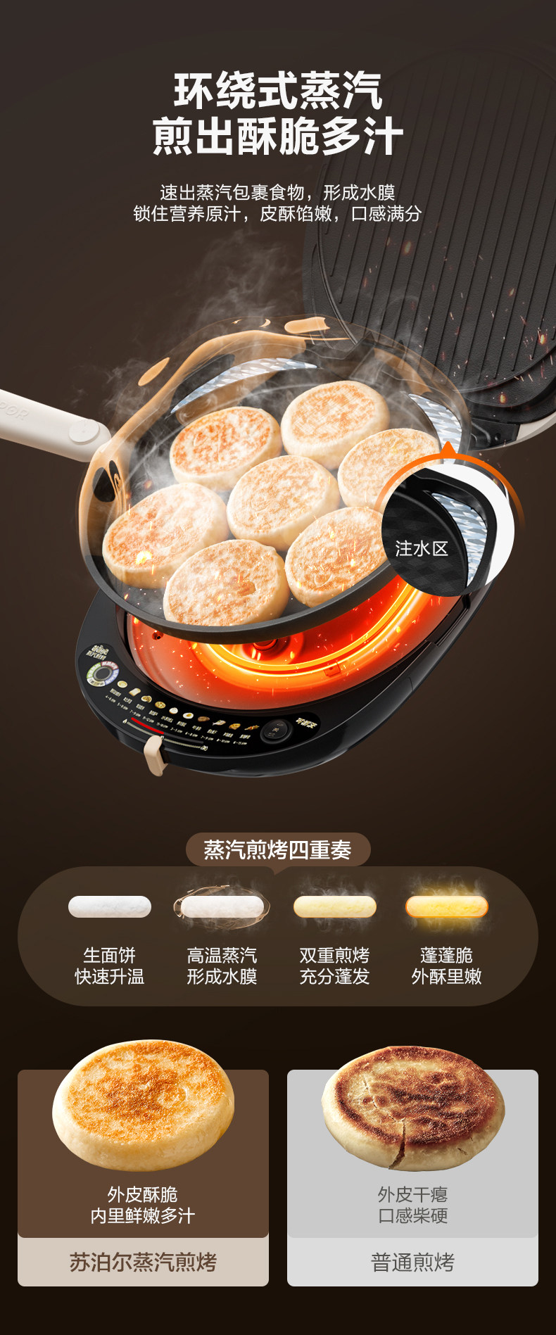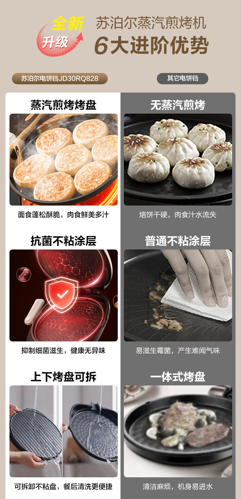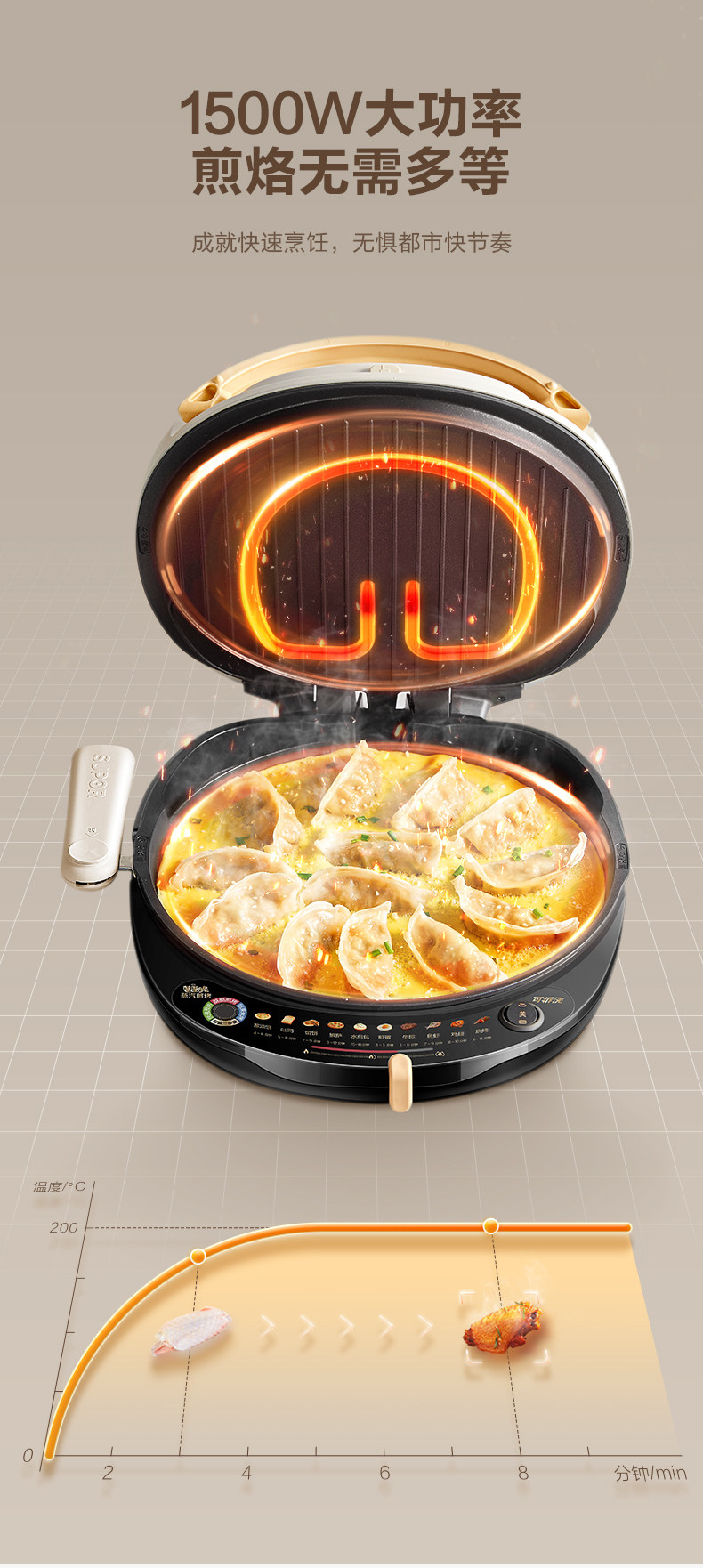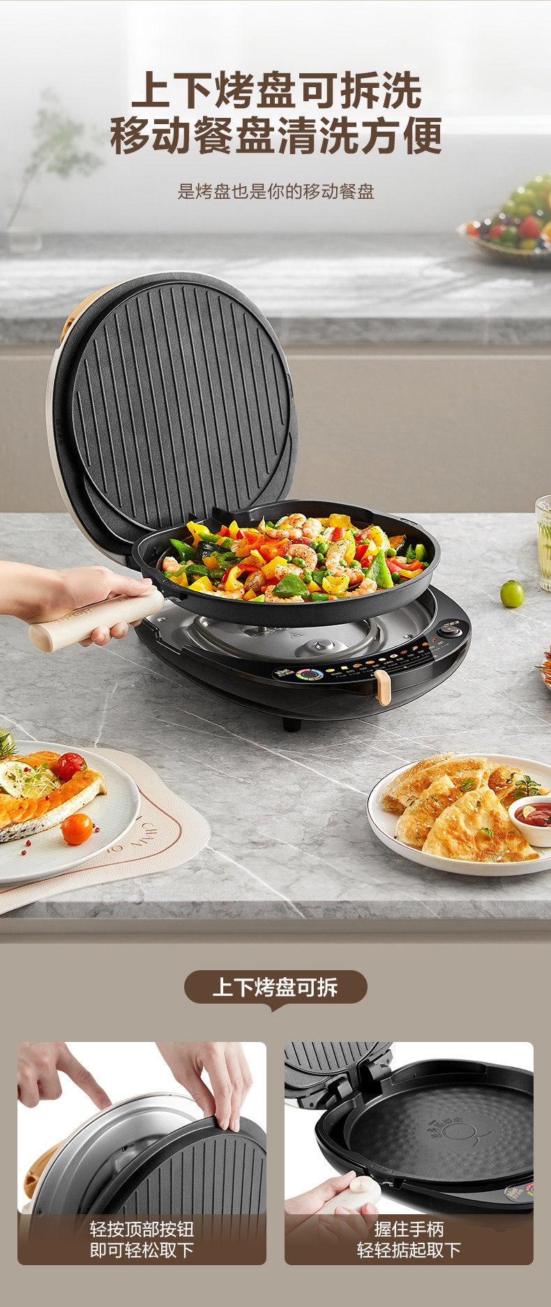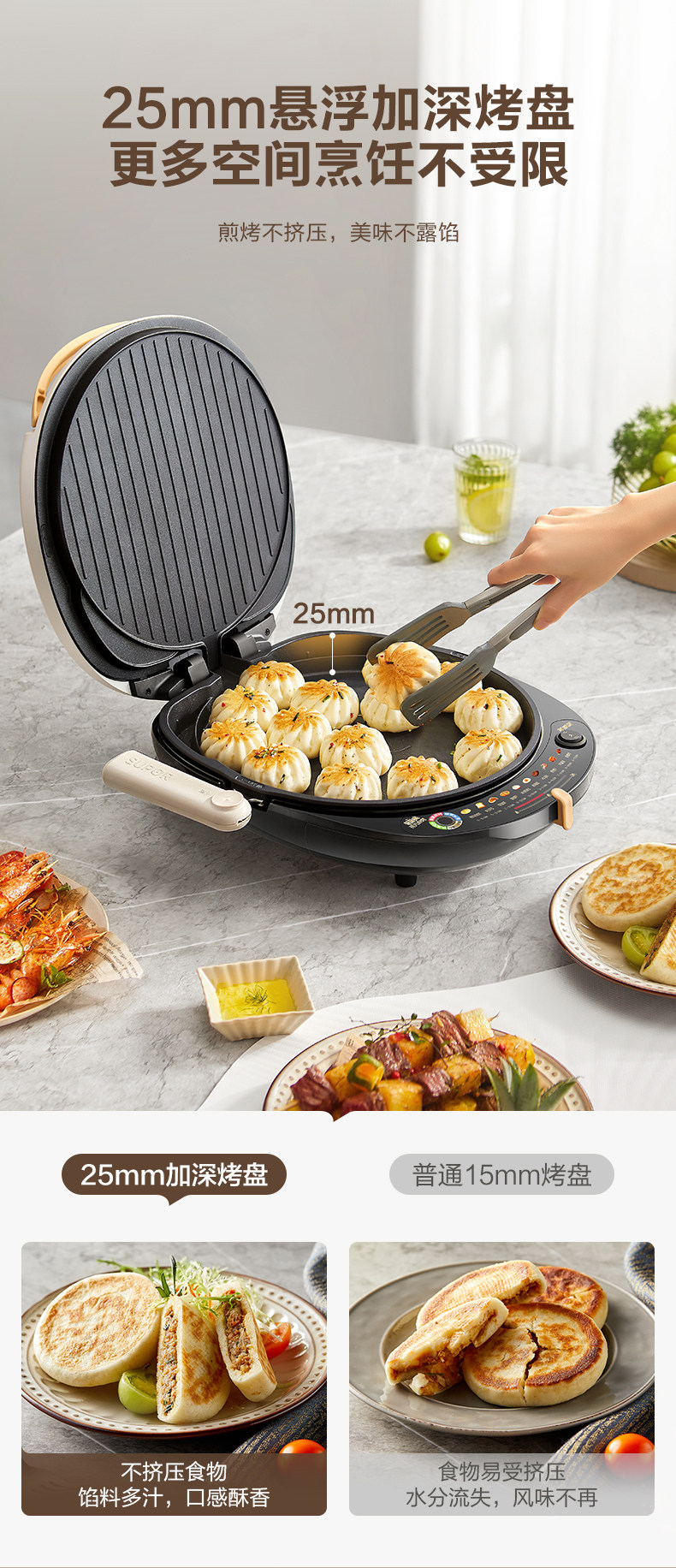Supor Electric Griddle with Double-Sided Heating for Home Use, Fully Automatic, Detachable and Washable, Enlarged and Deepened Griddle, Genuine Product