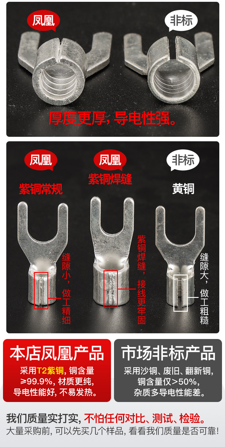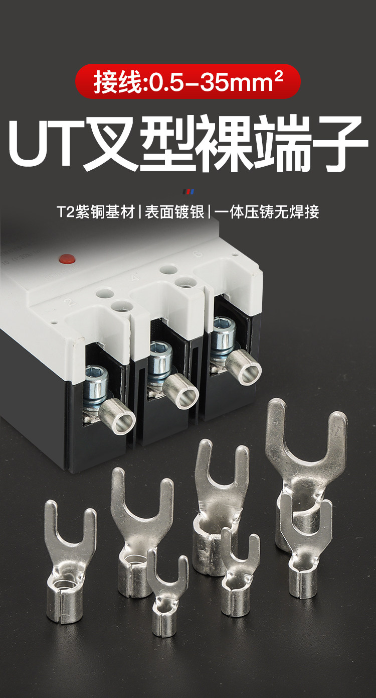 Phoenix Ut Series Fork-Shaped Cold-Pressed Copper Terminal Blocks, National Standard Copper Connectors, Copper Wire Lug Inserts