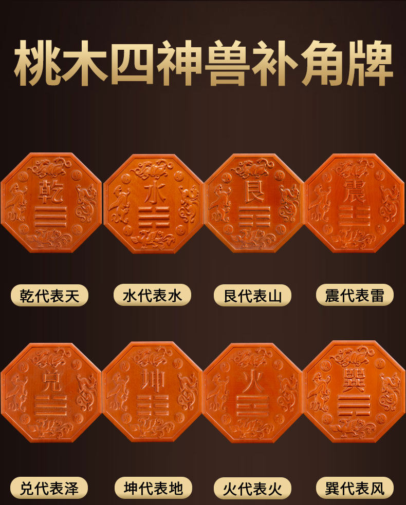 Peach wood supplement corner brand house missing corner four mythical beasts pendant ornaments household Zhen Xun Li Kun Dui Qian Kan Gen Gua