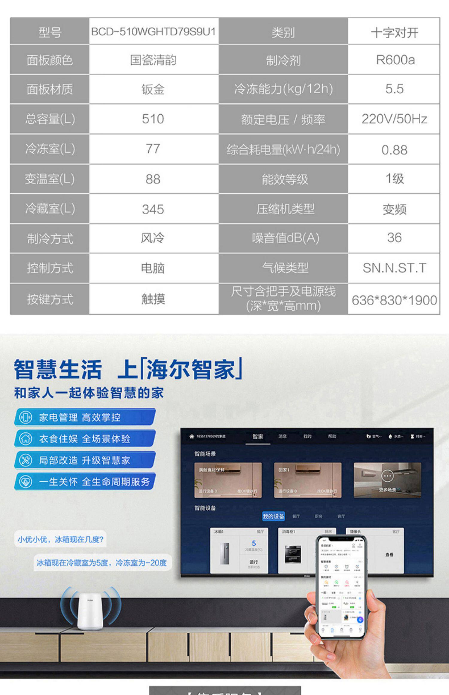Haier Refrigerator Embedded Cross-Door Four-Door Frost-Free First-Class Inverter Bcd-510Wghtd79S9U1