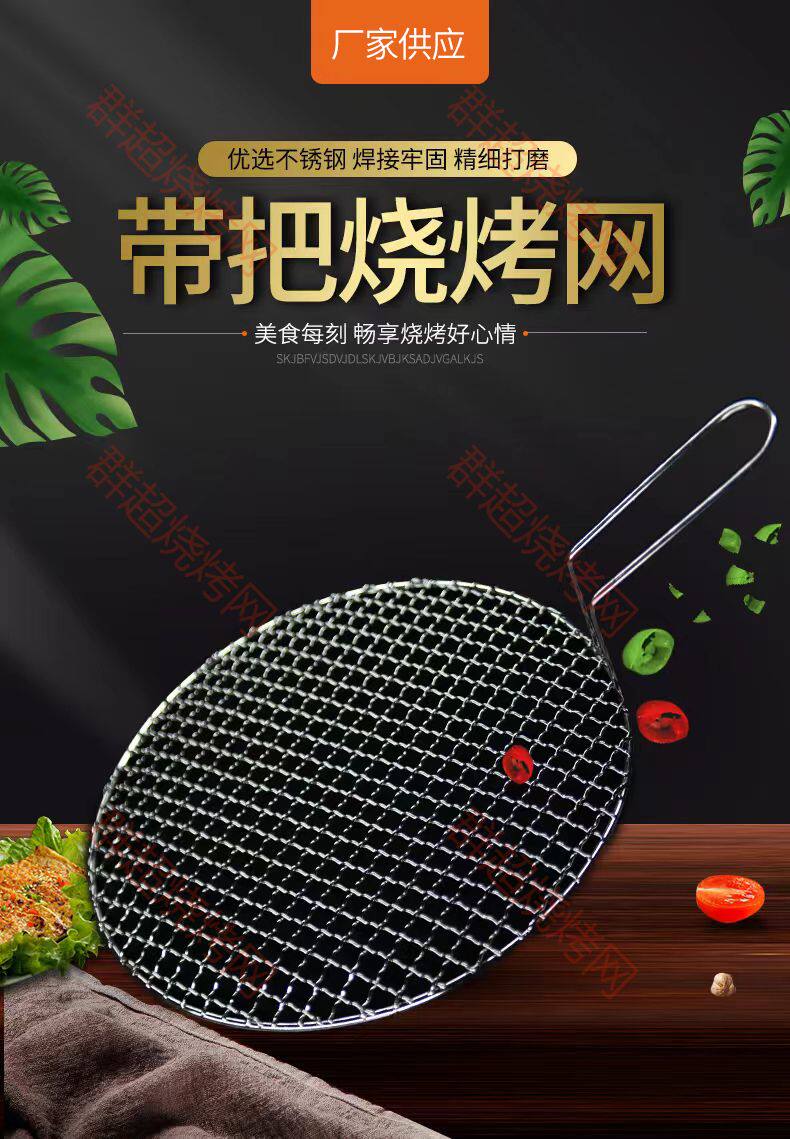 Round Stainless Steel Barbecue Grill with Handle, Korean-Style Charcoal Grill, Commercial Use, Thickened and Reinforced