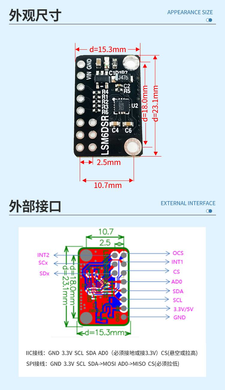 Color Classification Lsm6Dsr Module Six-Axis Gyroscope (),Lsm6Dsr Chip