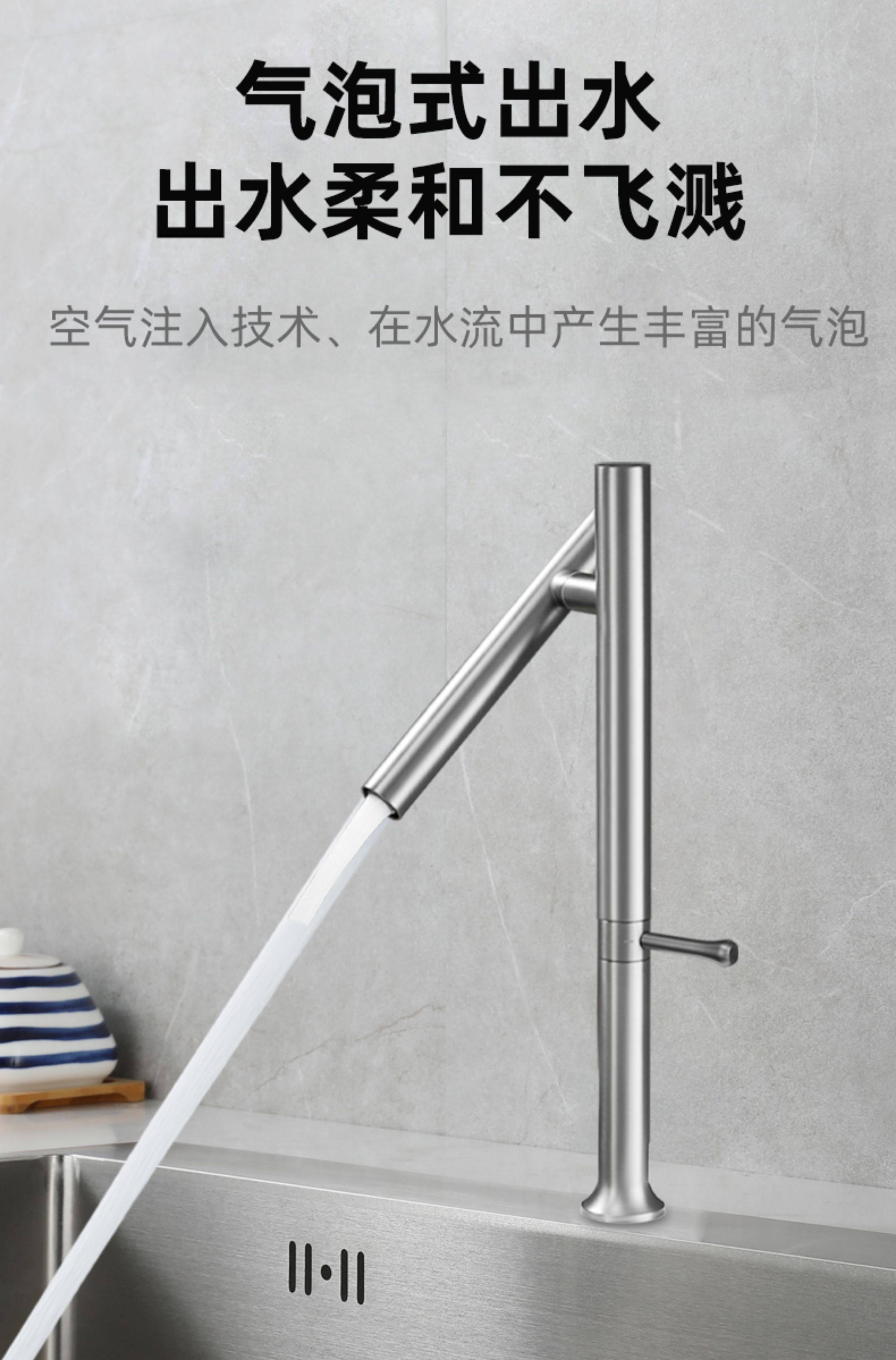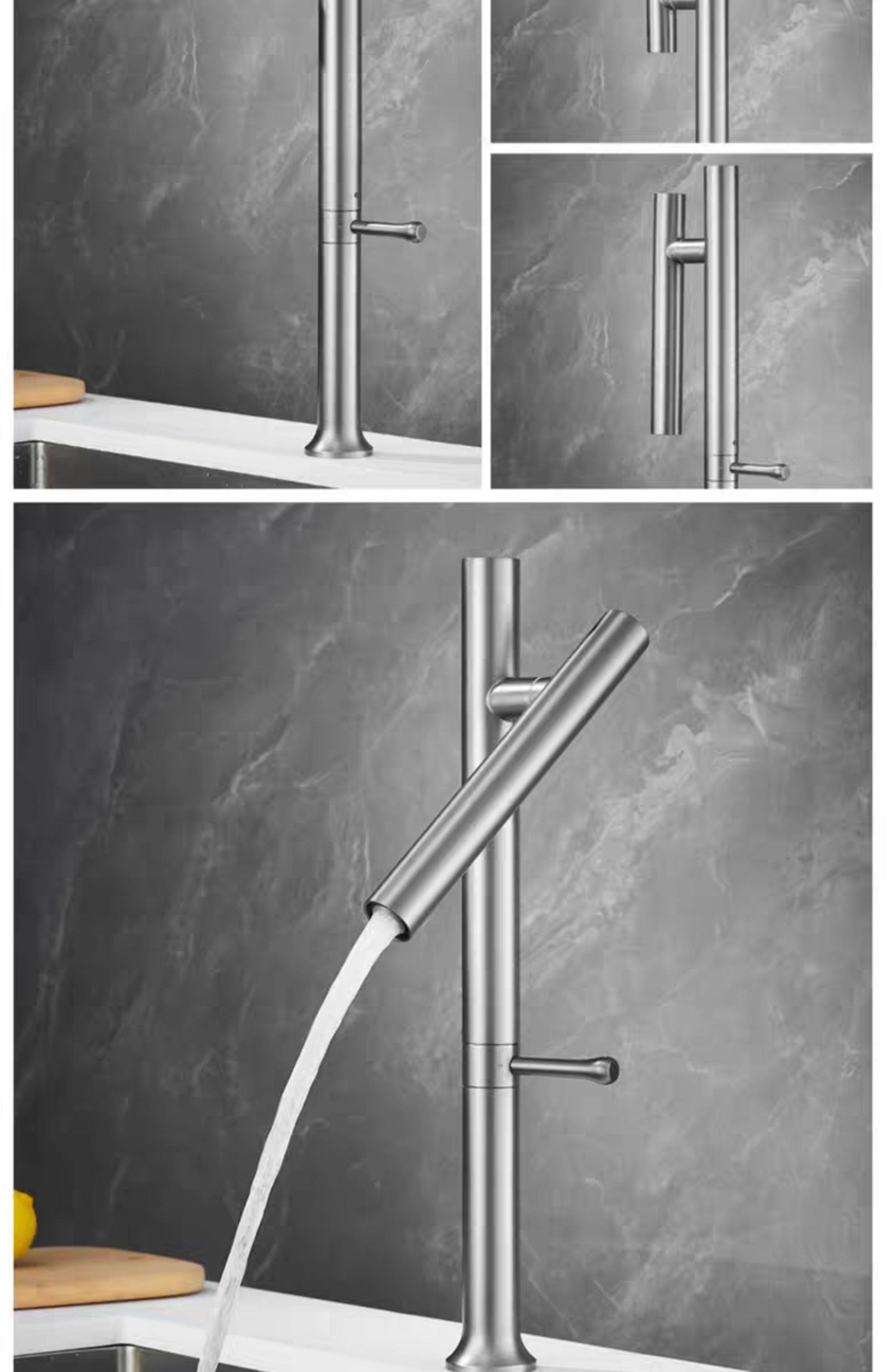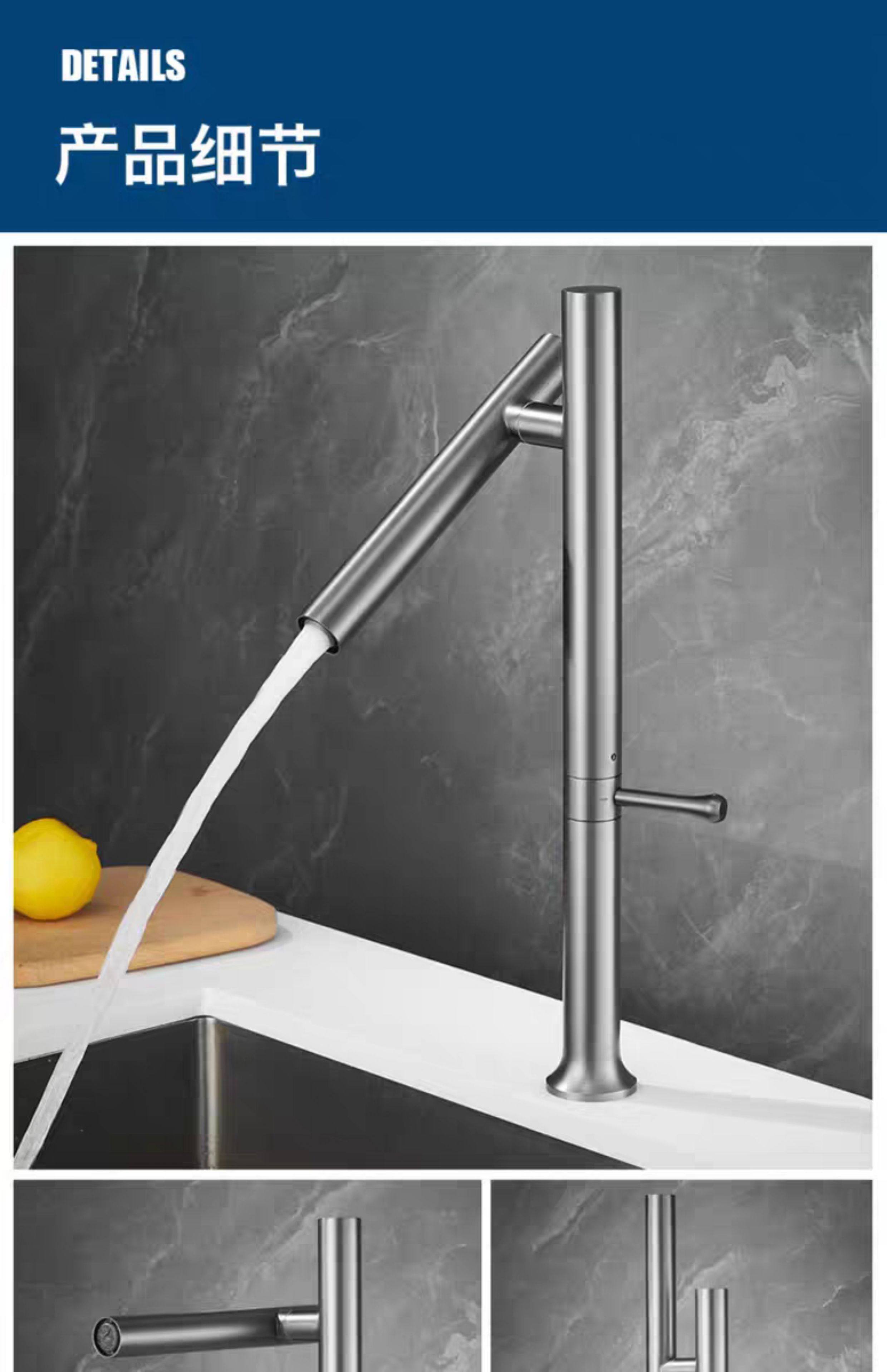 304 Stainless Steel Kitchen Faucet with Universal Swivel, Dual-Use for Hot and Cold Water, Suitable for Sink, Washbasin, Countertop Basin Faucet