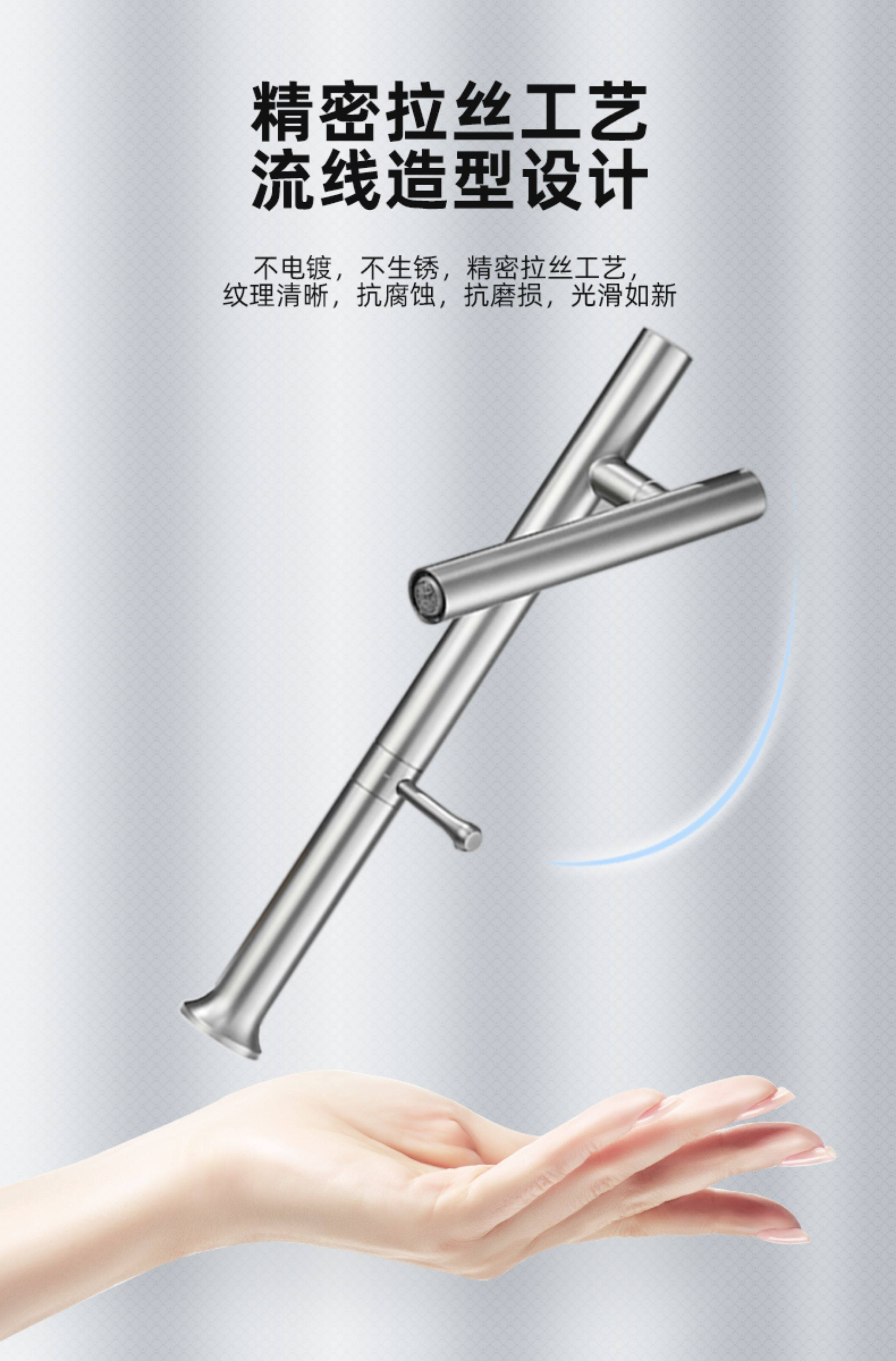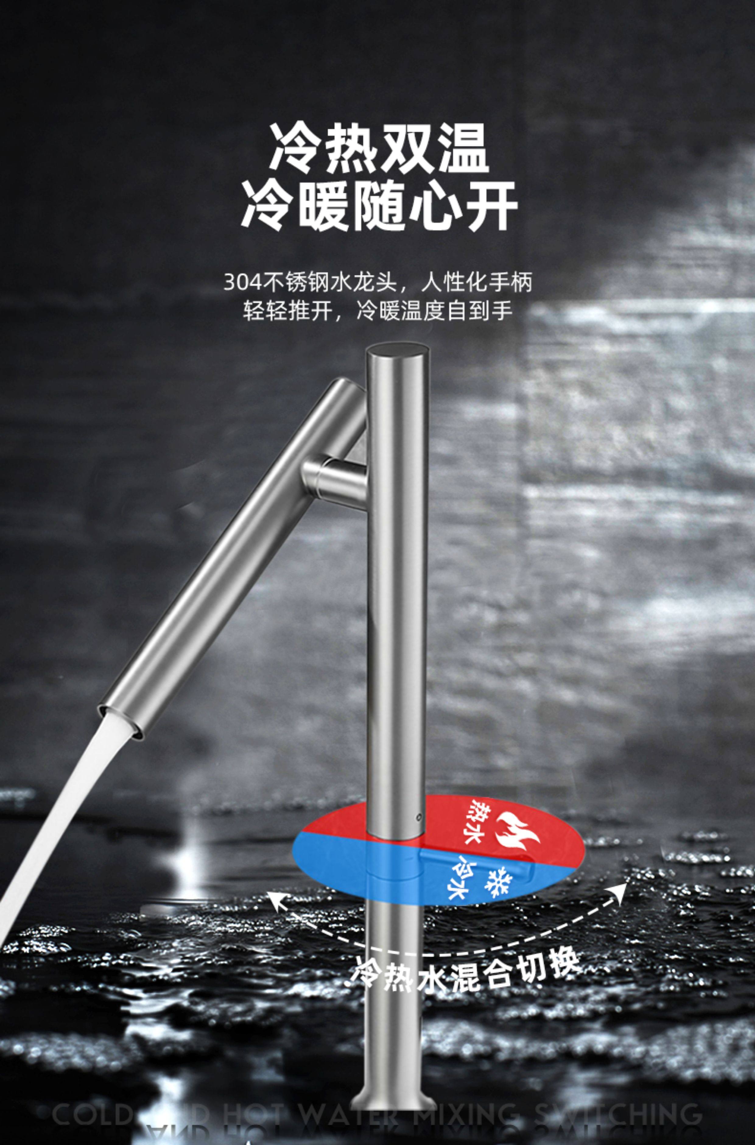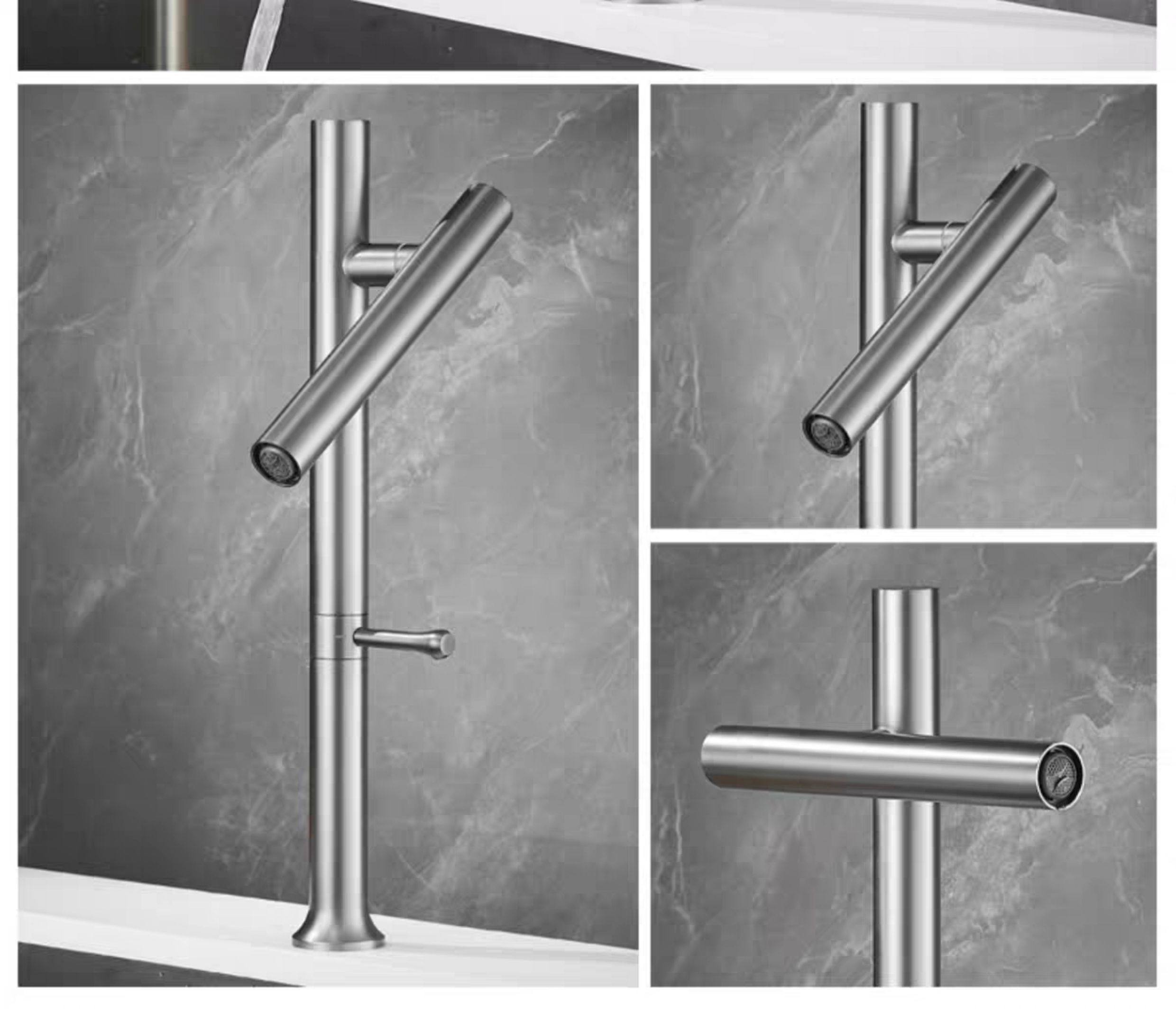 304 Stainless Steel Kitchen Faucet with Universal Swivel, Dual-Use for Hot and Cold Water, Suitable for Sink, Washbasin, Countertop Basin Faucet