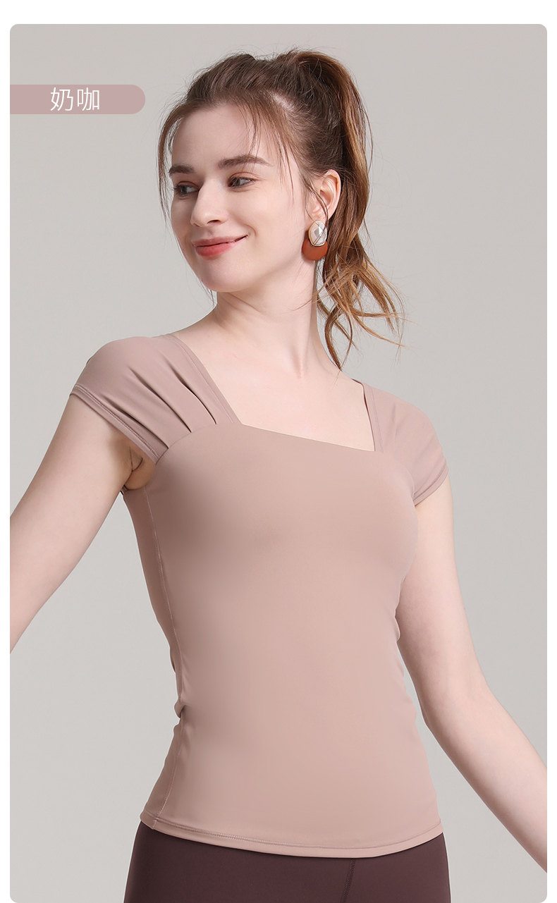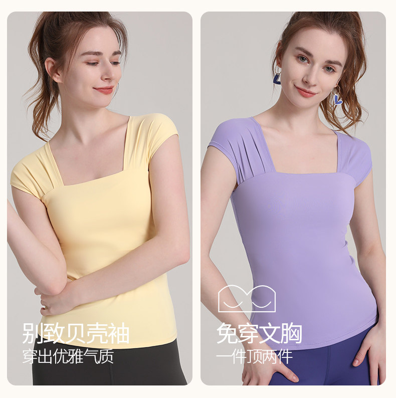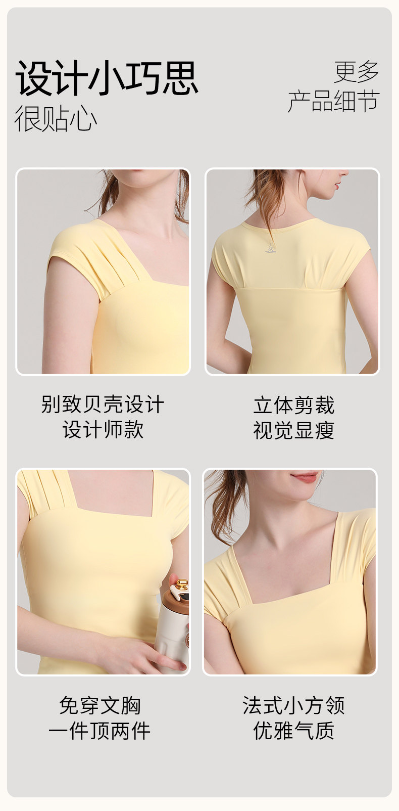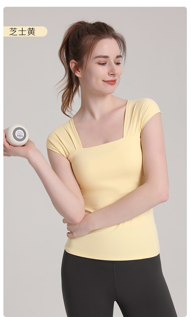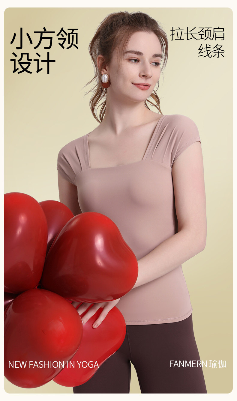 Vanmei Professional Yoga Wear Tops Women's 2025 Autumn New T-shirt French Square Tie Chest Pad Yoga Short Sleeves